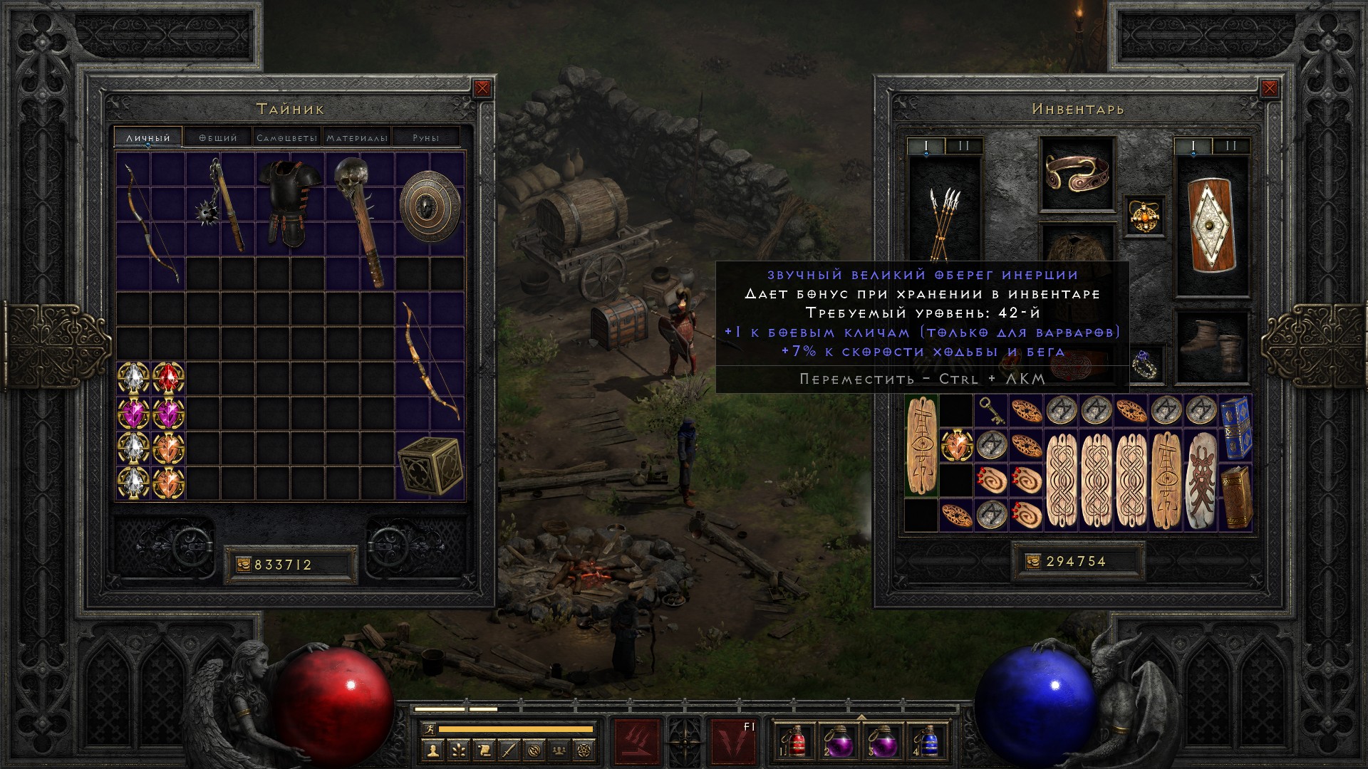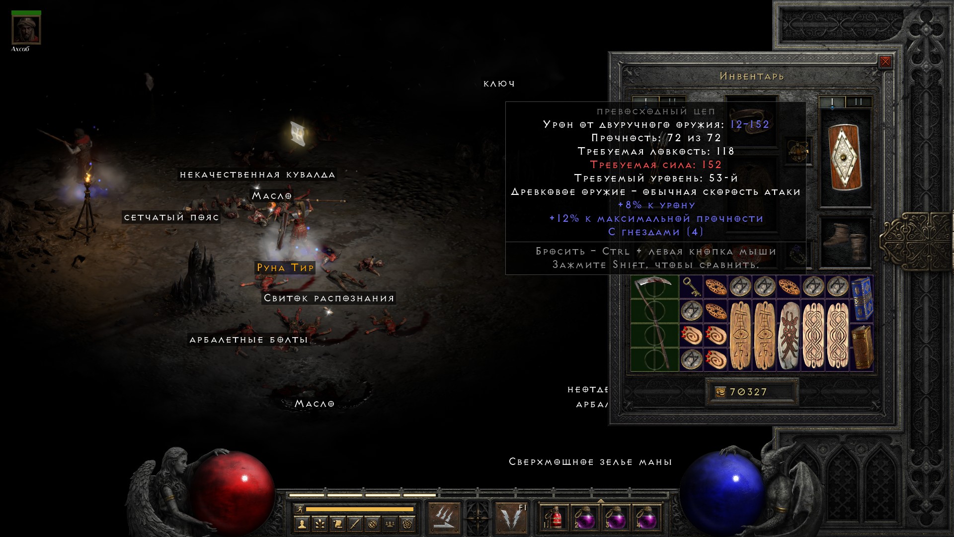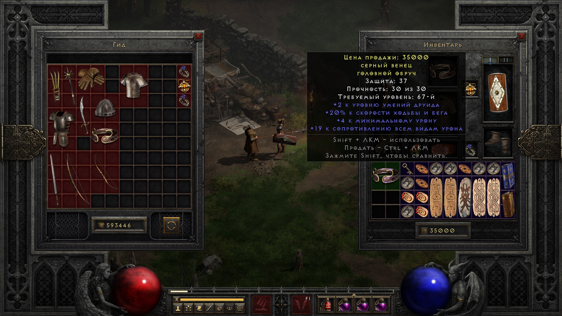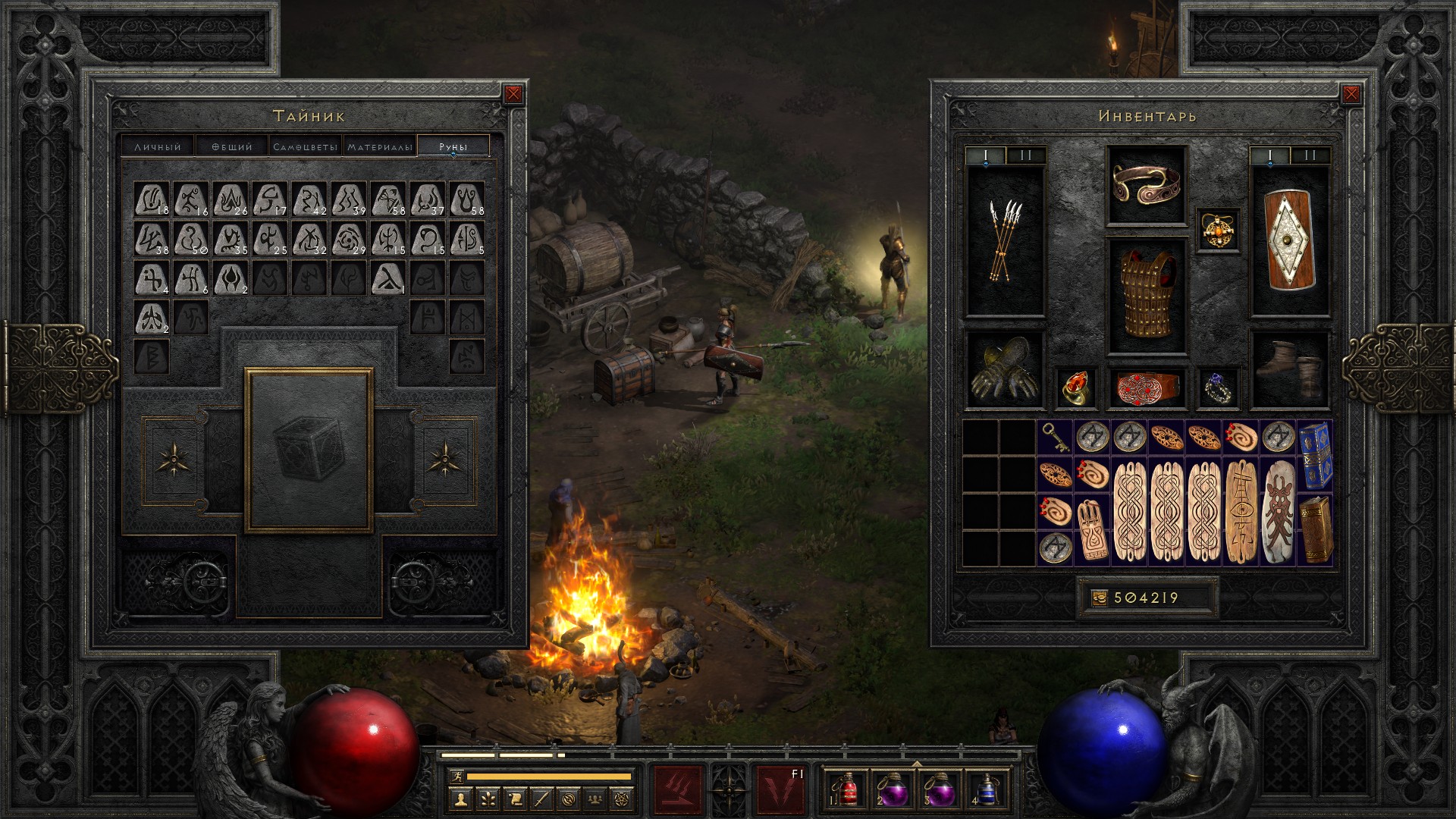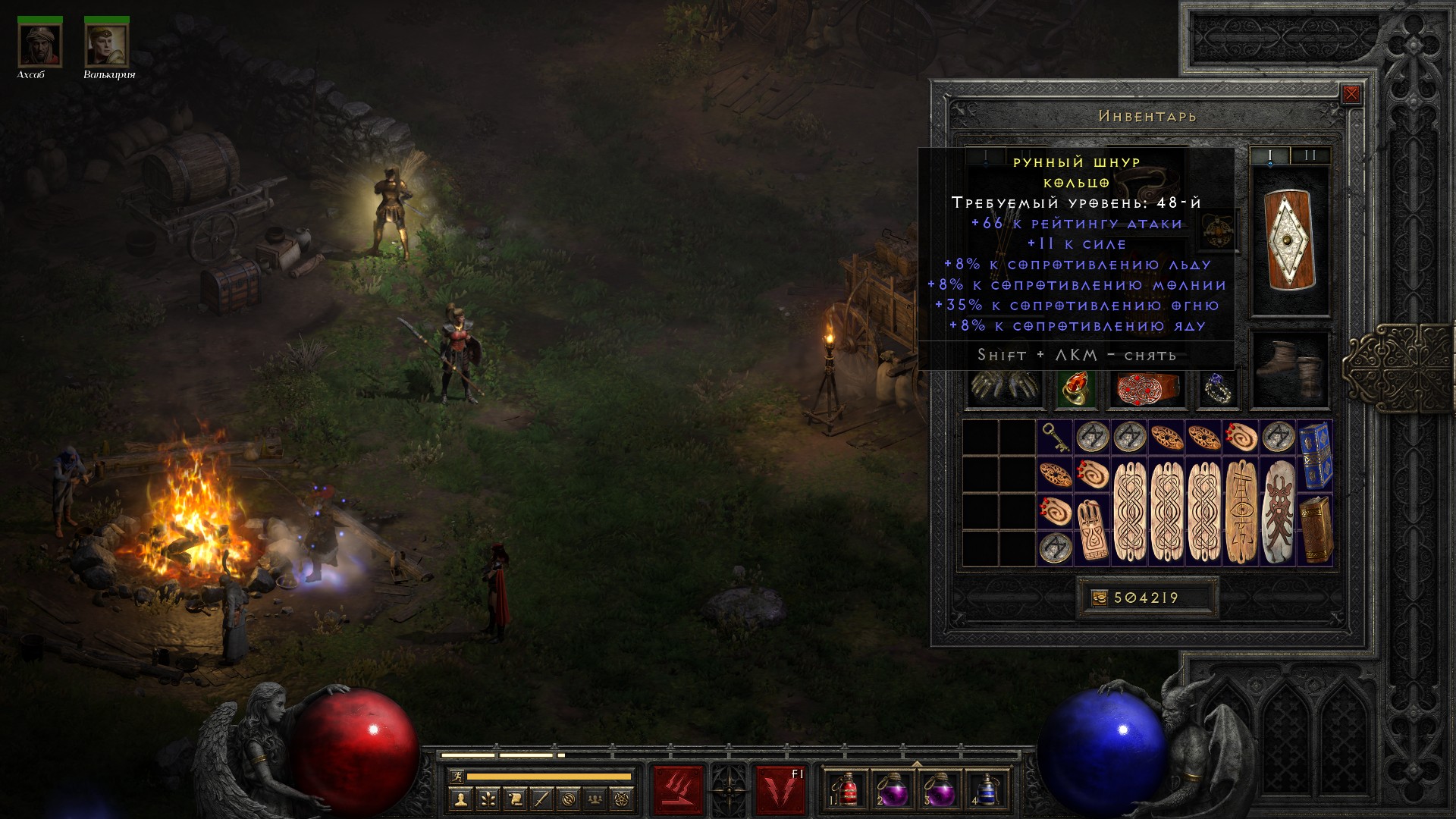 Возвращаю в инвентарь великий чарм на +13% ко всем сопротивлениям и меня старую броню на броню с рунным словом Дым, которое дает +50% ко всем сопротивлениям.