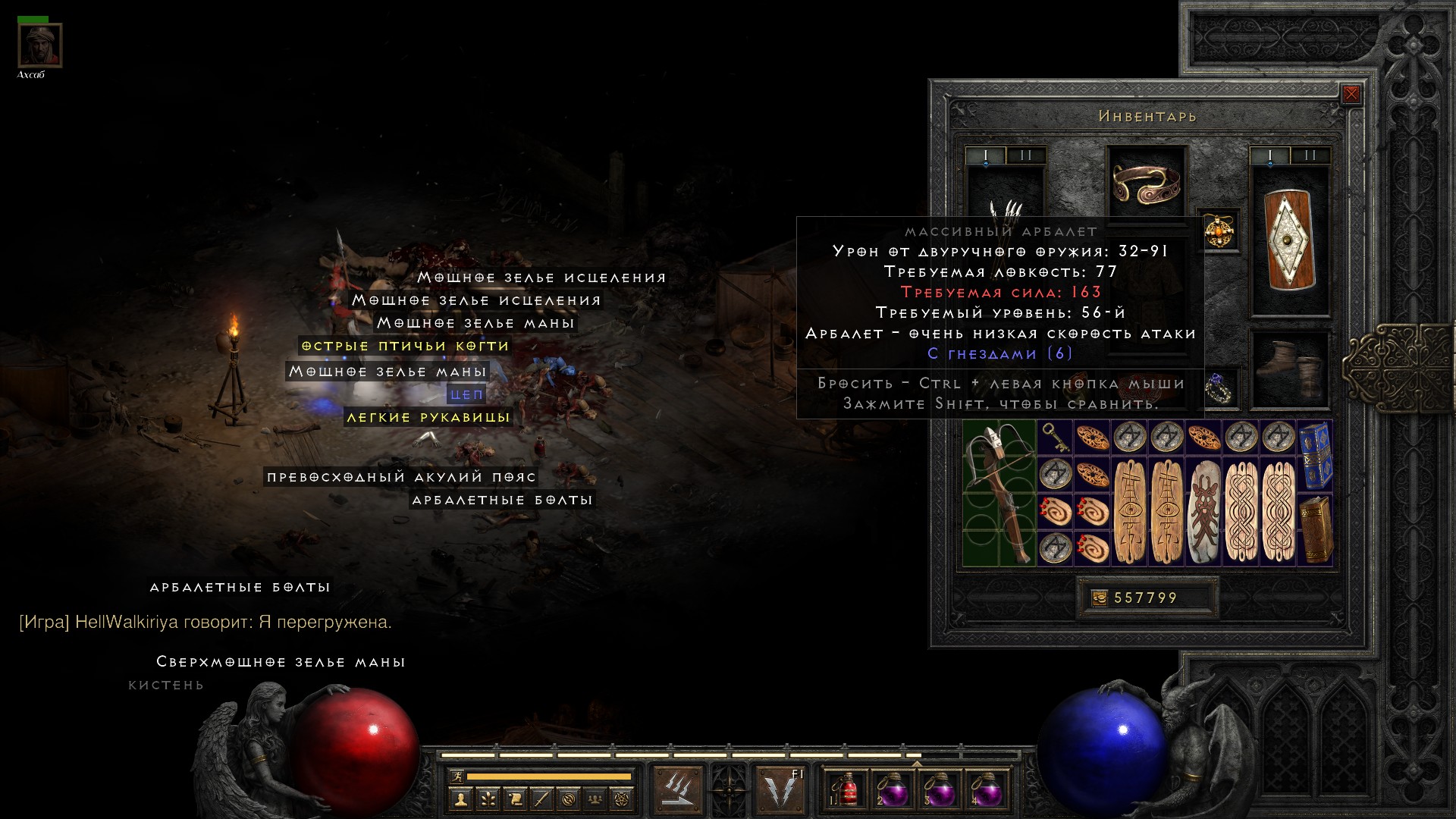 (его пришлось апгрейдить до экспертной версии, чтобы получить 16 слотов в поясе, а также взять несколько чармов на силу, т.к. силы не хватало)