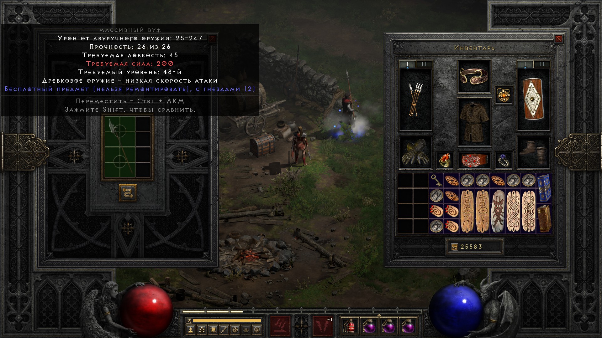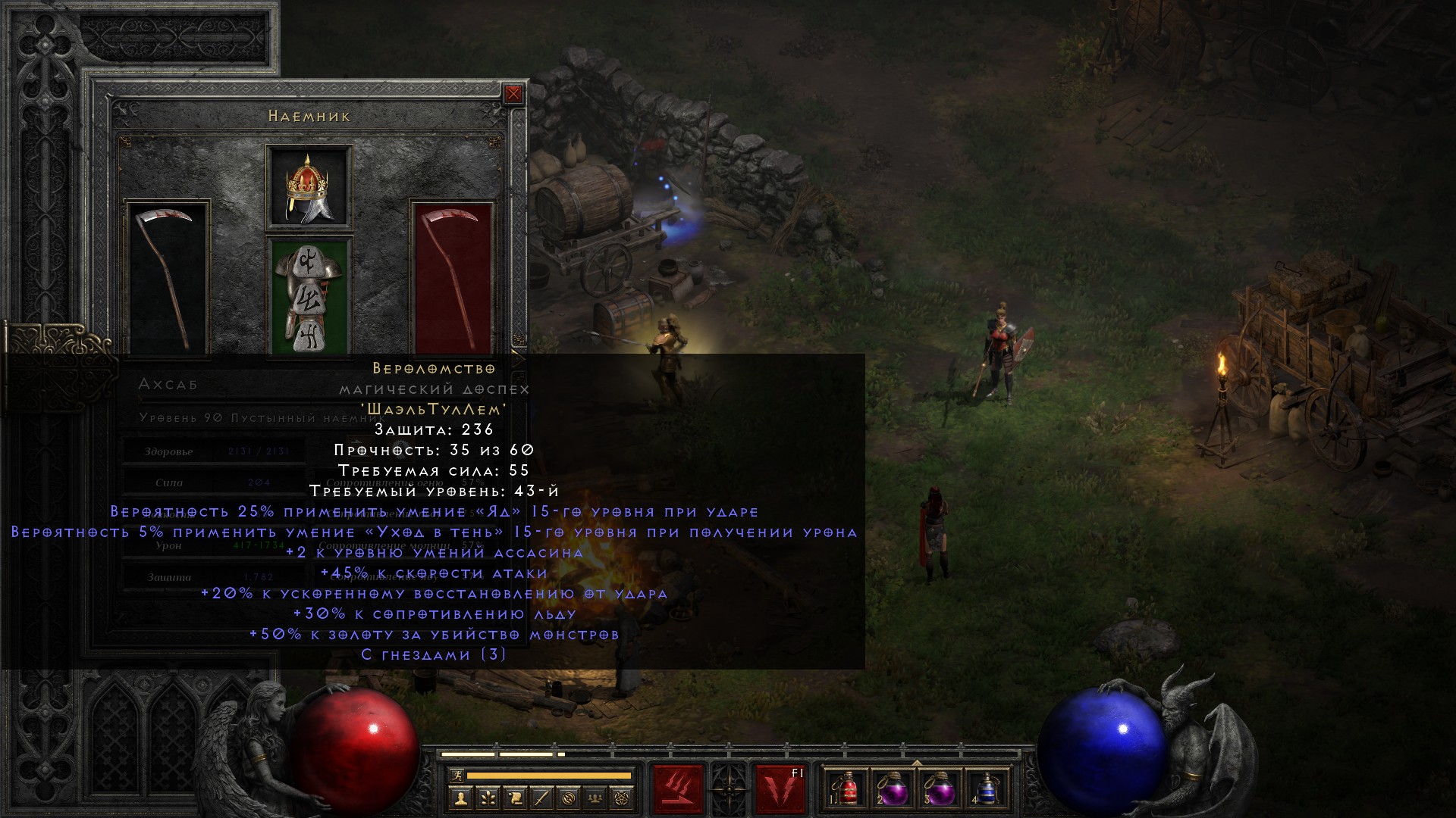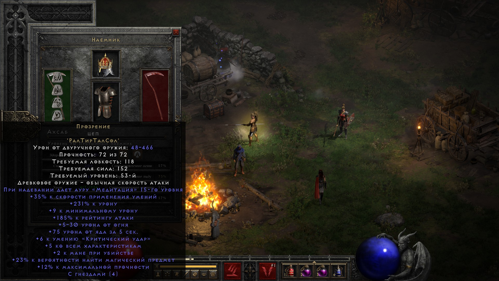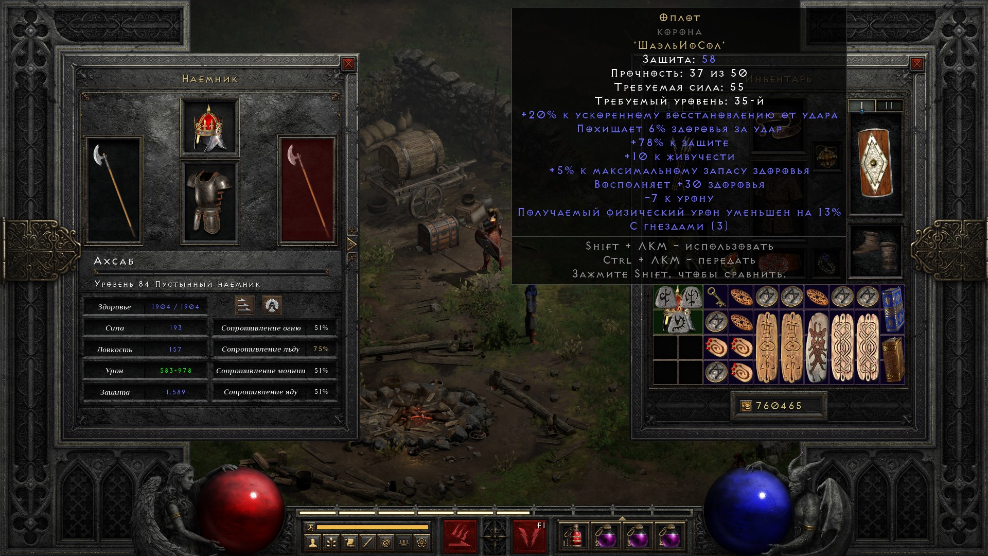 Выпадает корона на 3 гнезда, в котором собираю рунное слово Оплот для наемника, чтобы он был более живучим.