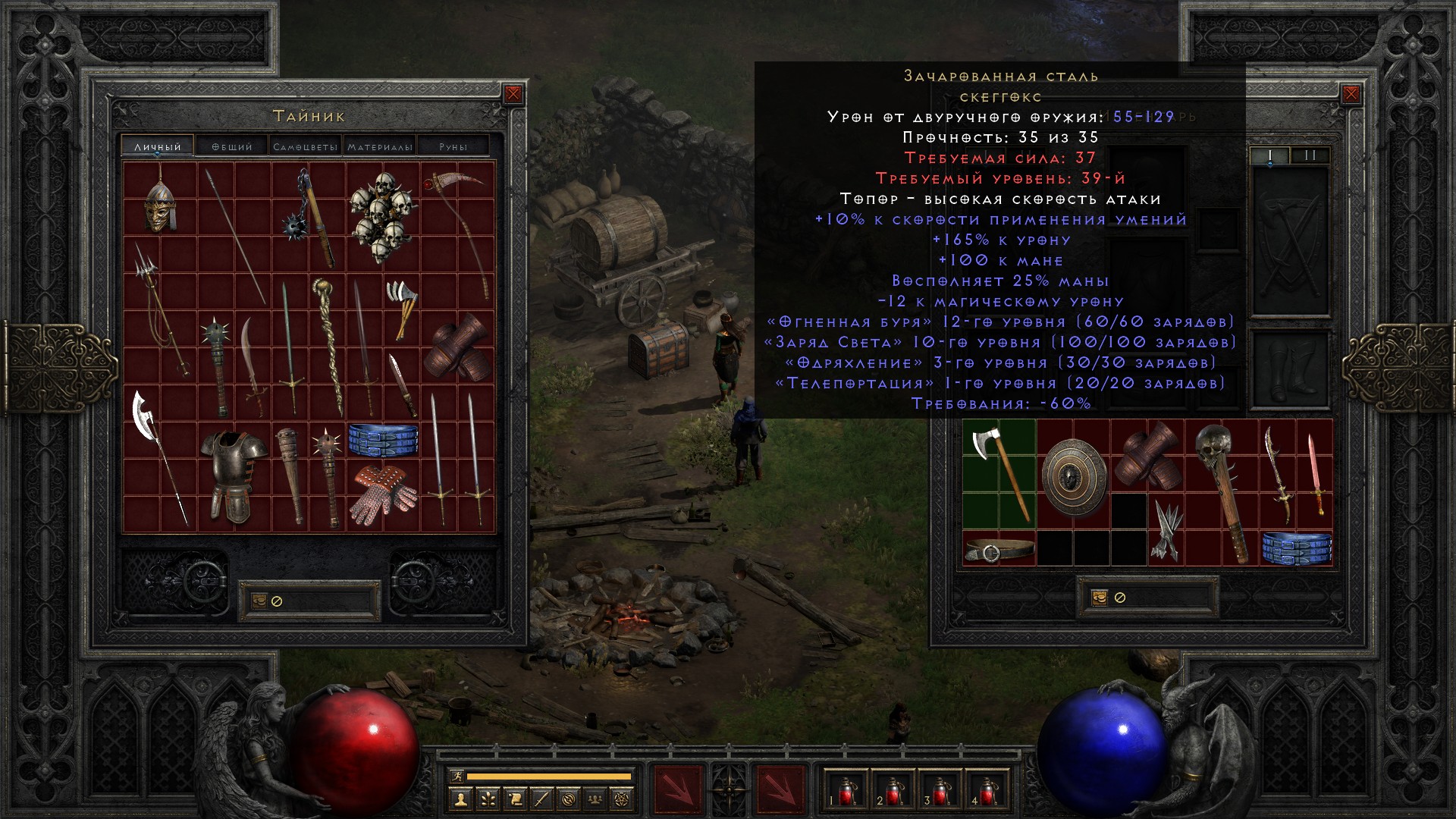 Потом, чисто случайно, просматривая твинков обнаружил, что на одном лежит уникальный топор Зачарованная Сталь, который дает тот самый телепорт.