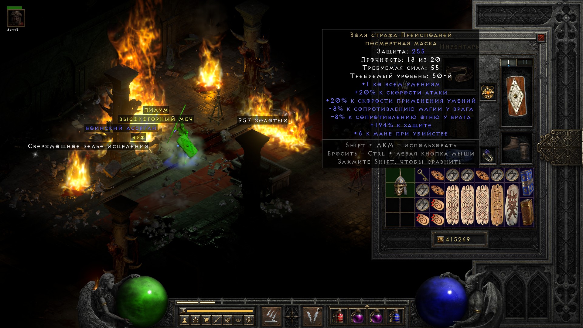 Заметно увеличившийся запас здоровья позволил поменять пояс с +100 здоровья на уникальный пояс Золотая Перевязь, который дает +30% к мф.