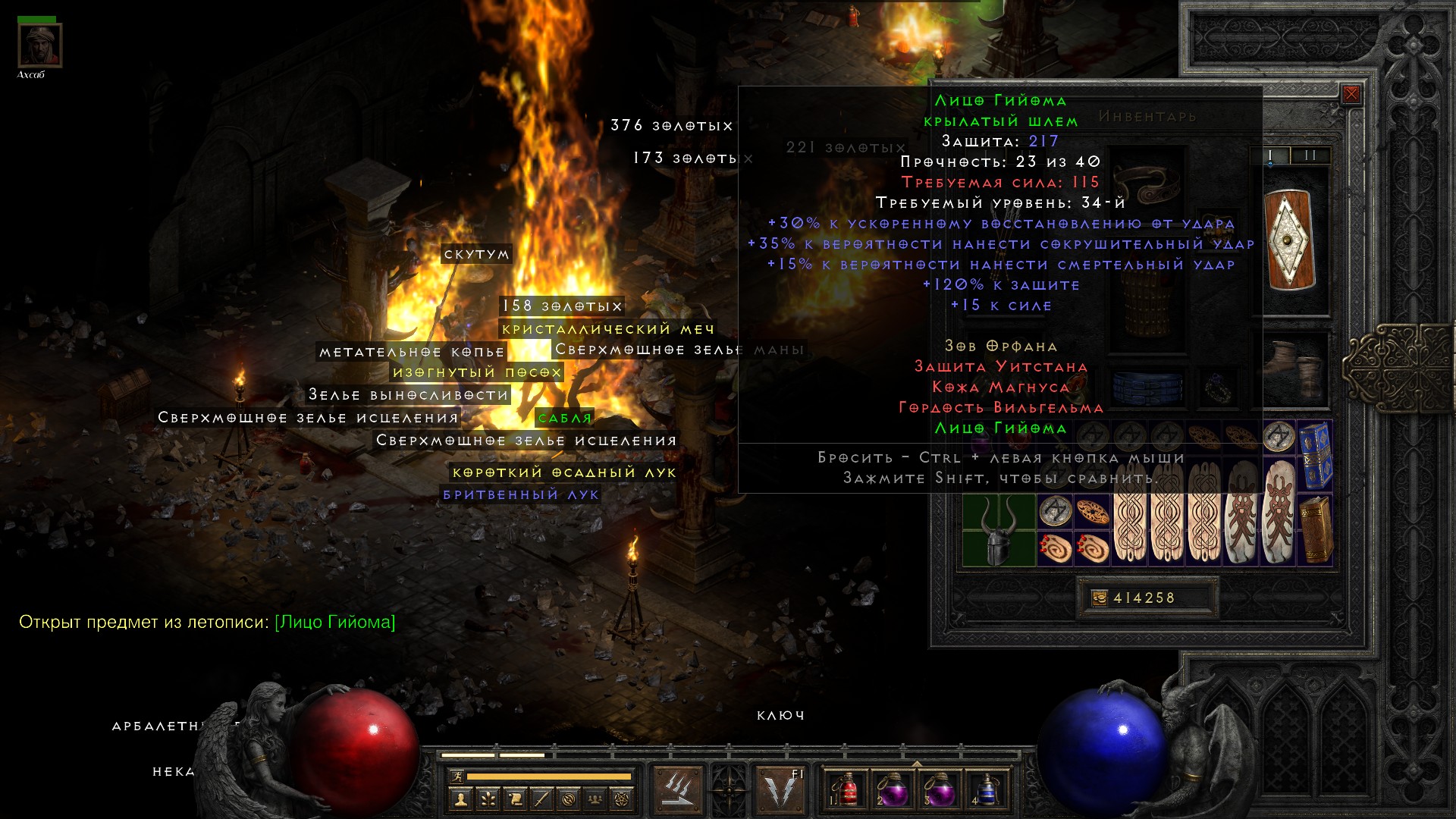 154 забег – сетовый шлем Лицо Гийома – это лучший шлем для всех билдов которые фармят убер-Тристрам