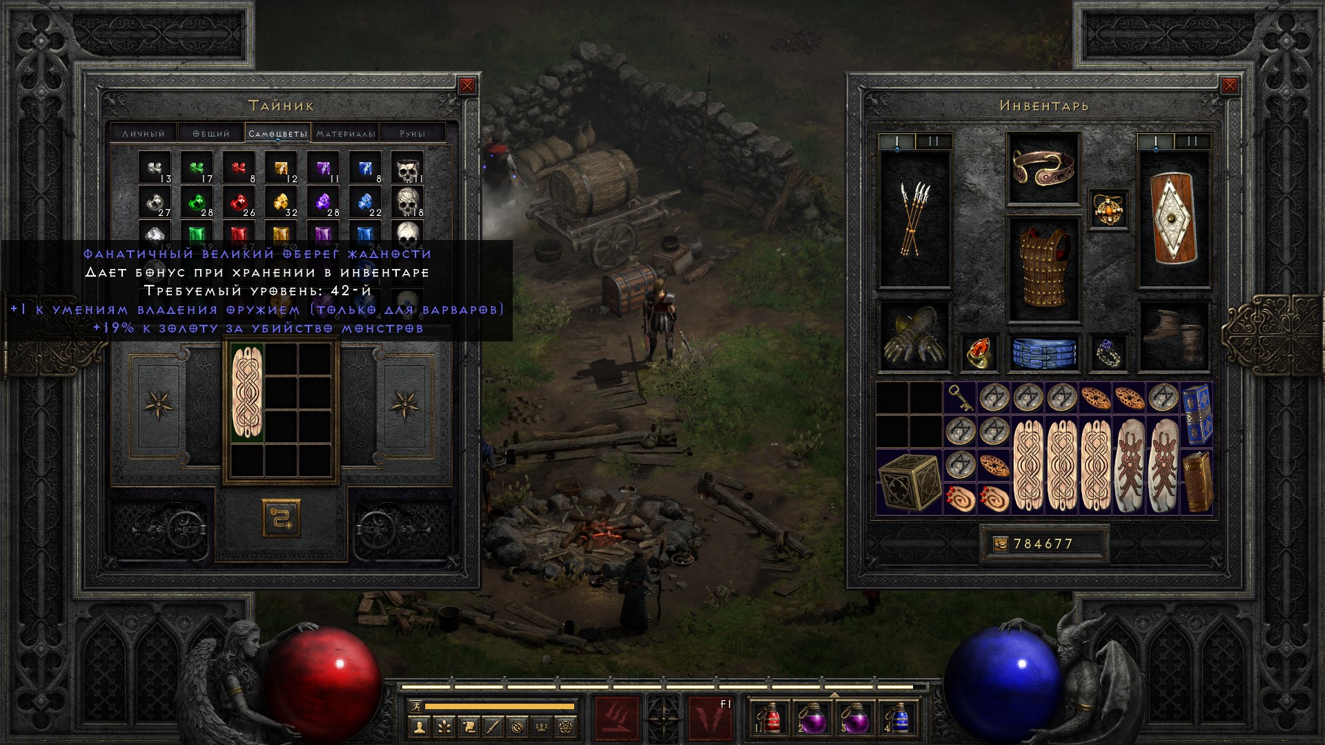 Подумал, что здоровья хватает, а вот мф хочется побольше – и заменил несколько чармов с +здоровье на чармы +7% мф.