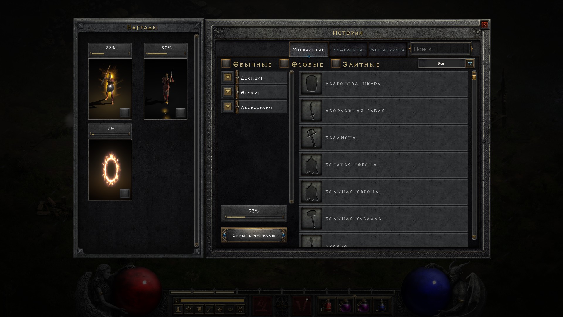 Хроники (или же компендиум): сборник всех уникальных и сетовых предметов, которые вы нашли за время игры. Величайшая вещь для любителей собрать Святой Грааль, и просто приятный бонус для обычных игроков. Вроде ещё обещают давать косметику за нахождение всех предметов.