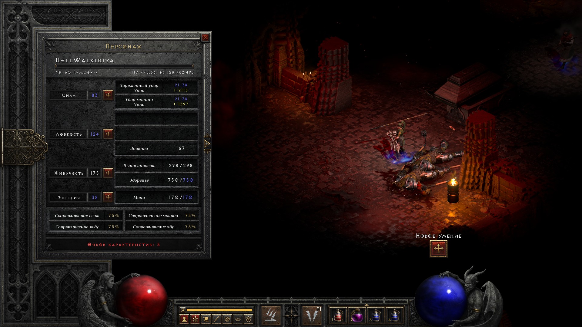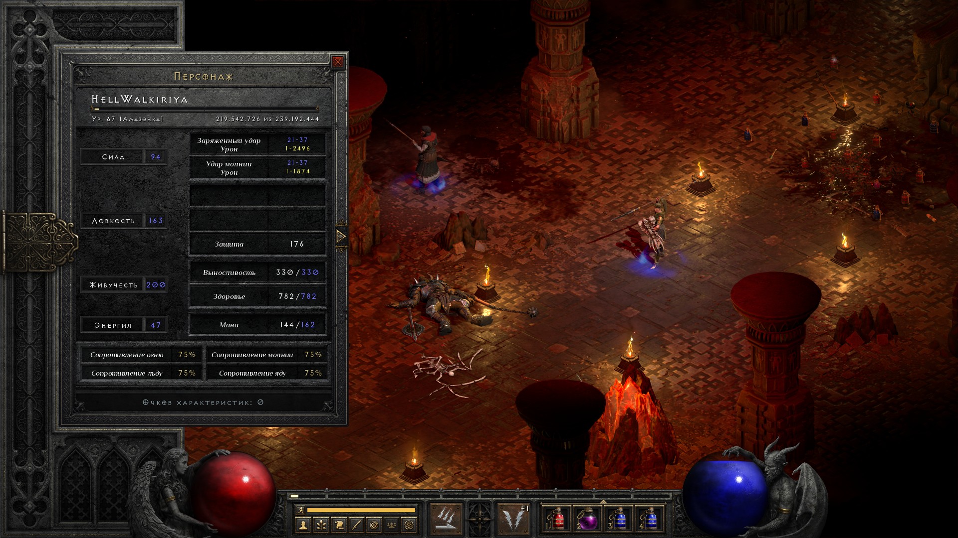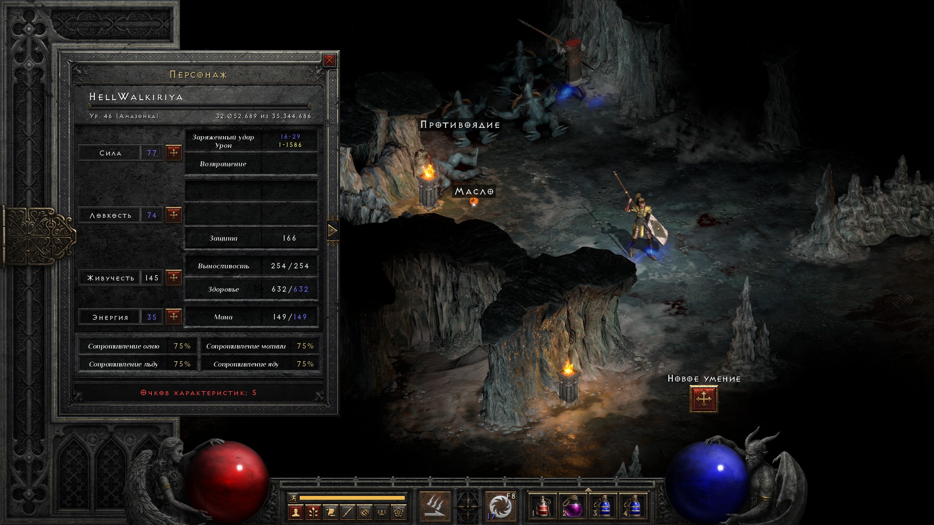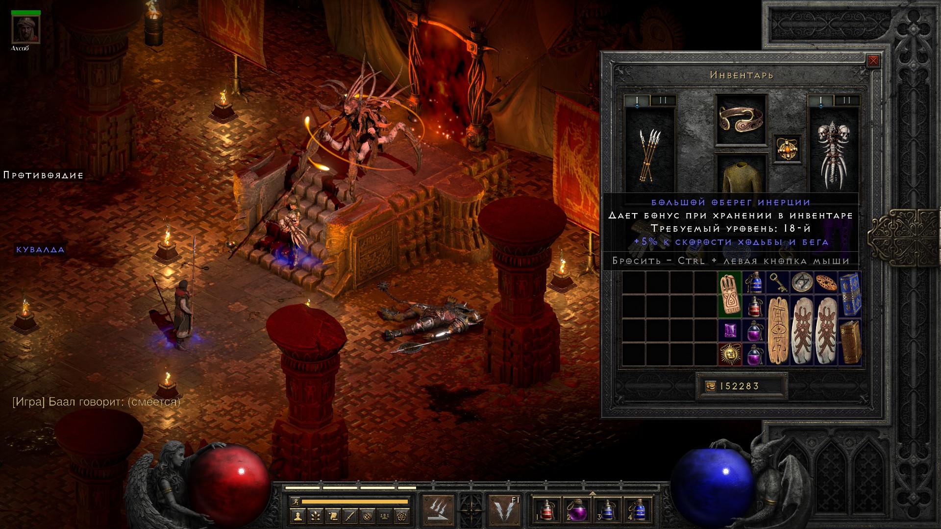 Освобождаю Аню, получаю свиток на +10% ко всем сопротивлениям, немного разгружаю инвентарь от лишних чармов и получаю классовое оружие на амазонку, которое… ни о чем. В общем-то как обычно.