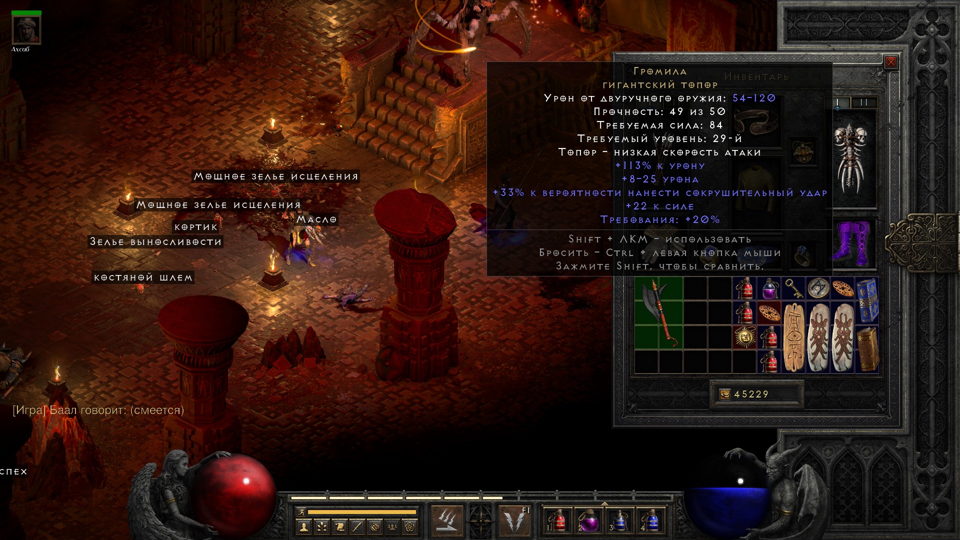Итоговая экипировка на конец пятого акта обычной сложности:
