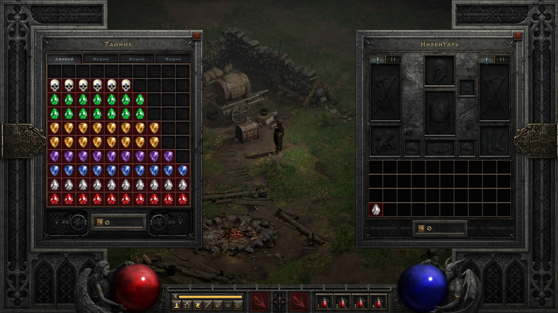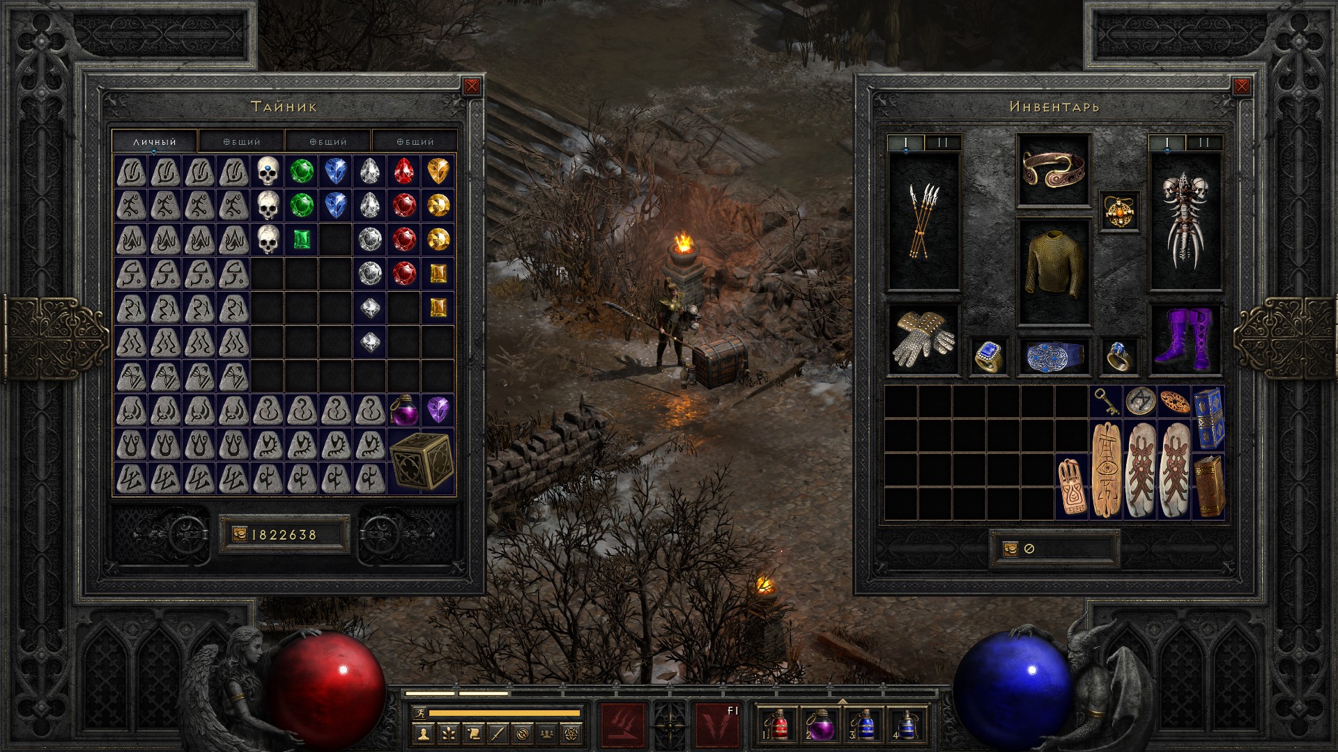 Знаете, подумал о том, что после этих хроник скоплю такое количество уникальных и сетовых предметов, такое количество рун и чармов, что смогу легко прокачивать любой другой класс. У меня давно есть мысли пройтись по классическим билдам и сделать свои обзоры – с примерами персонажей, с видео, со скринами характеристик. При этом каждый билд можно будет делать в двух вариантах: в бомж-варианте, без стартового шмота, и в варианте когда у вас куча хорошей экипировки с предыдущих персонажей.