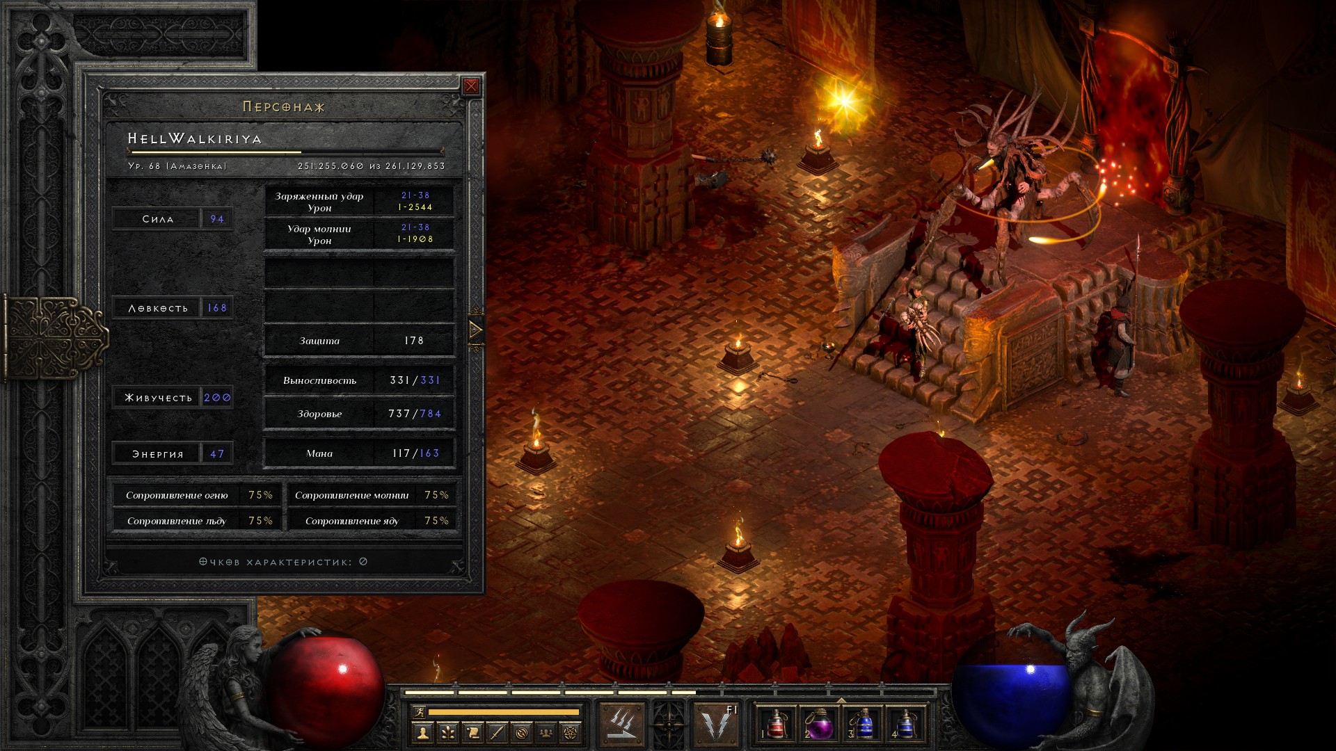 Переодеваюсь в боевую экипировку, добираю чармы на здоровье и вот финальные характеристики на конец обычной сложности.