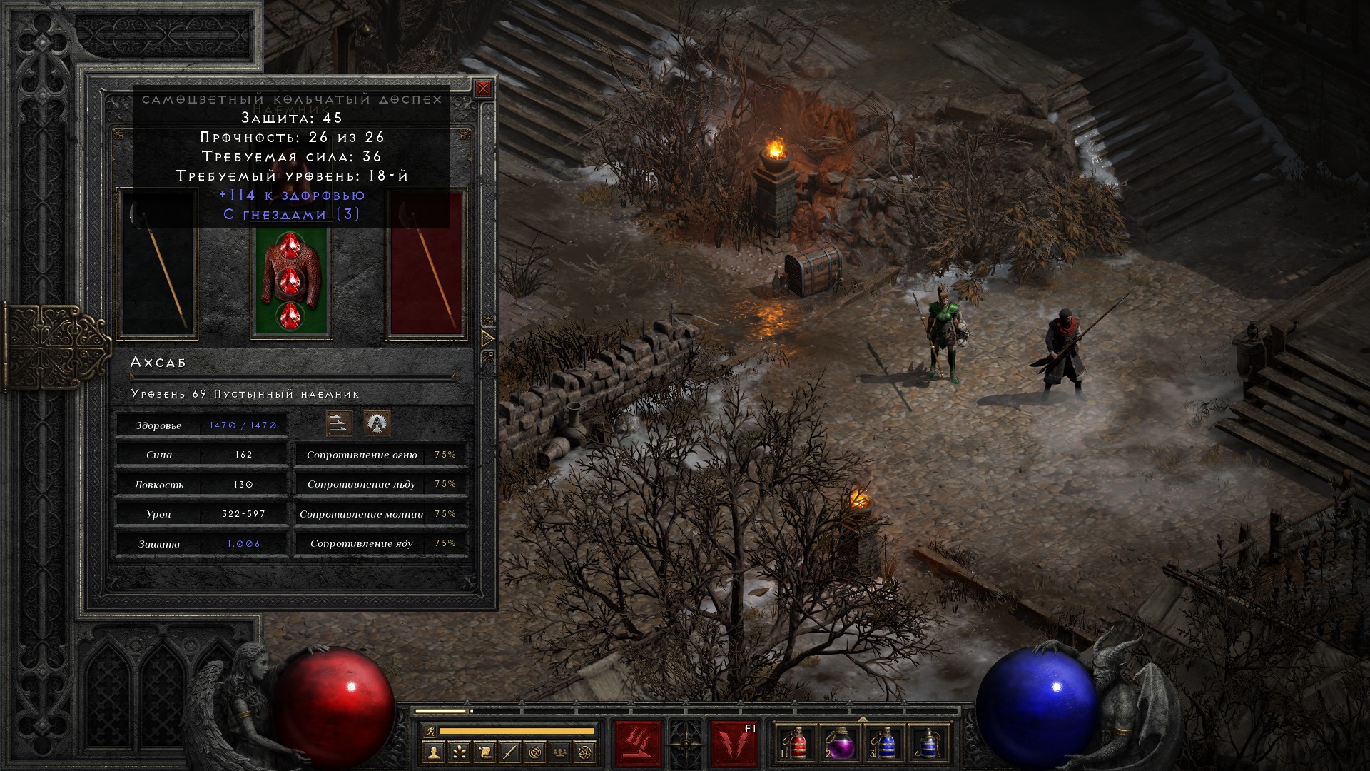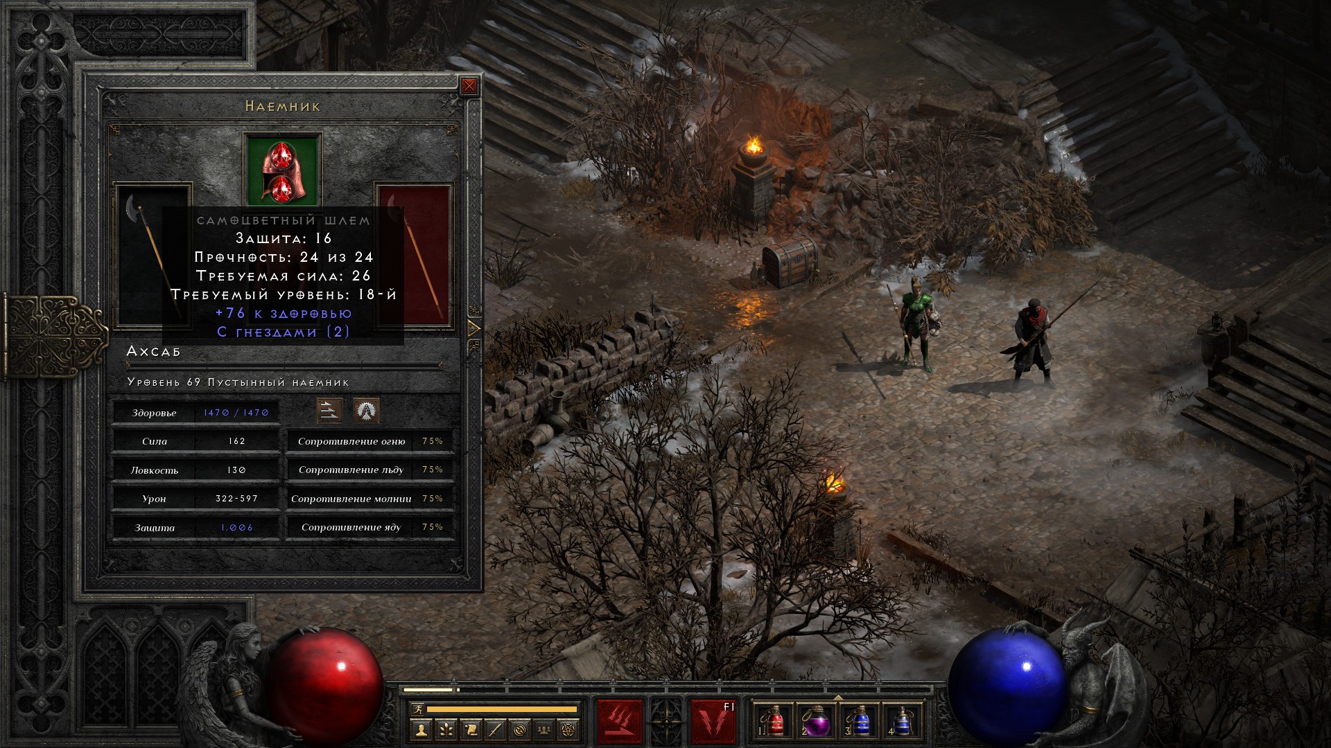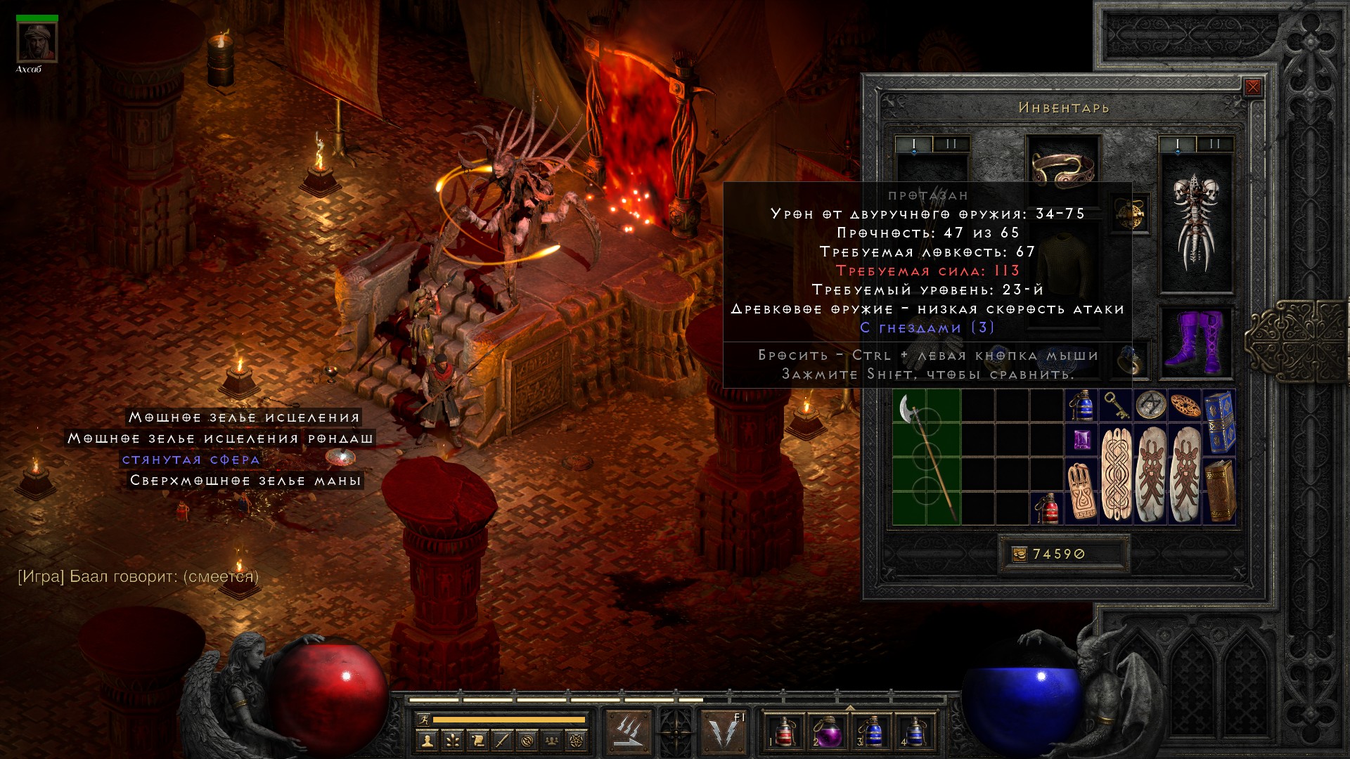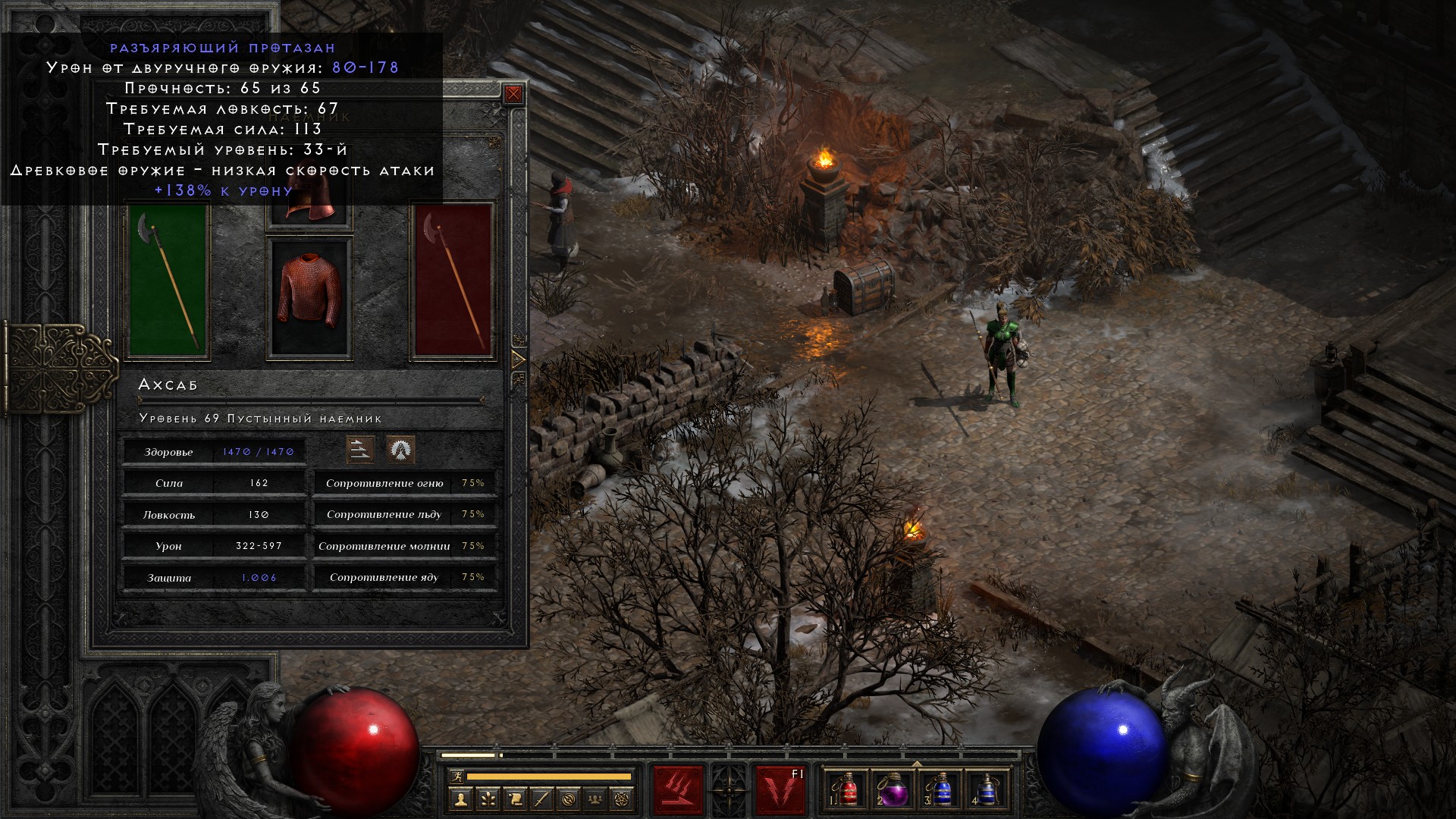 Несколько раз выпадал Протазан на 3 дырки, но вот на 4 дырки ни одного древкового оружия не выпало. Видимо такой дроп недоступен на обычной сложности. А очень жаль – уже не терпится собрать рунное слово Прозрение, которое даст ауру медитации избавит от проблем с маной.