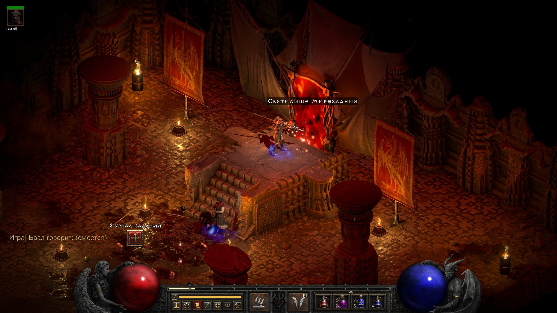 Кстати, обратите внимание сколько опыта дали (по полоске опыта внизу) за одно убийство Диабло. Если бы я мог его убивать каждый забег (т.е. если бы после его убийства не открывалась вкладка 5 акта), то прокачаться в 4 акте можно было бы значительно больше.