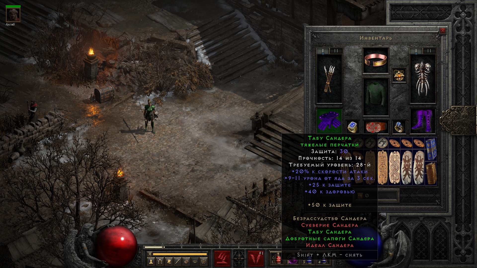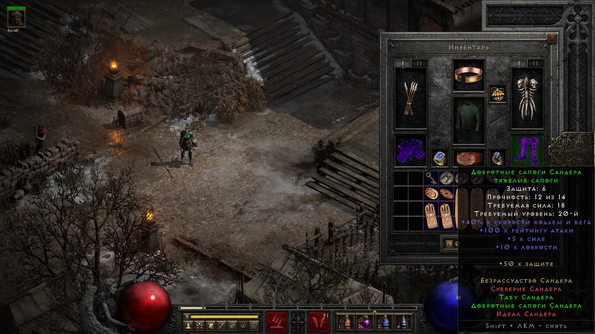 Эти ботинки позволили надеть новый щит и сопротивления к огню и яду поднять до максимума.