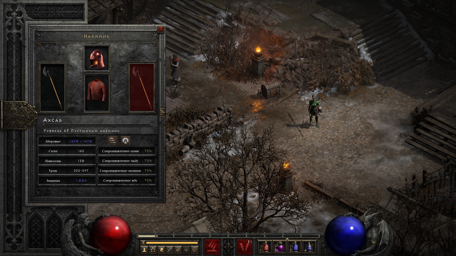 Сливаю накопленное золото на гемблинг. Ничего интересного не попалось, только новое древковое оружие для наемника.