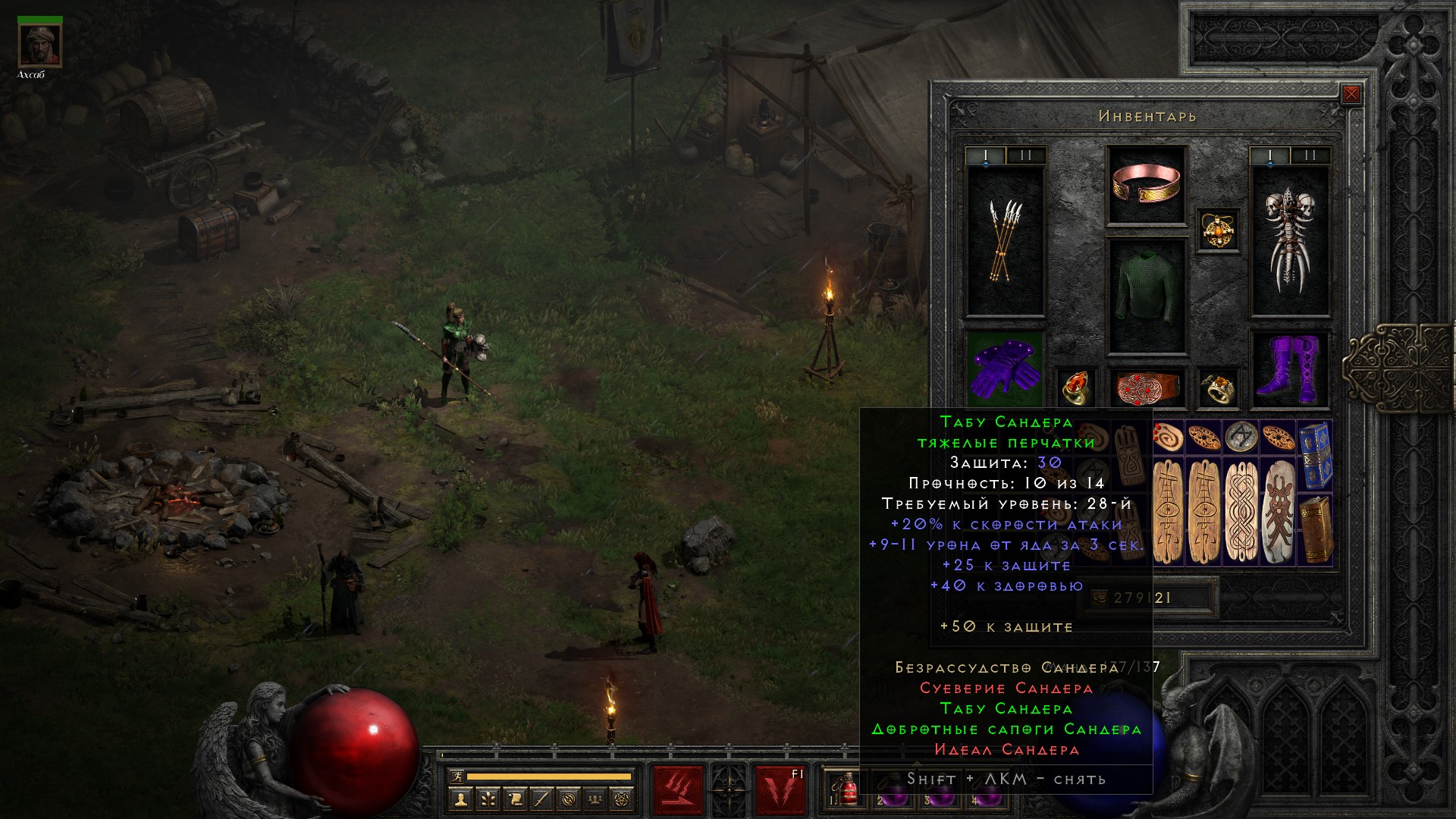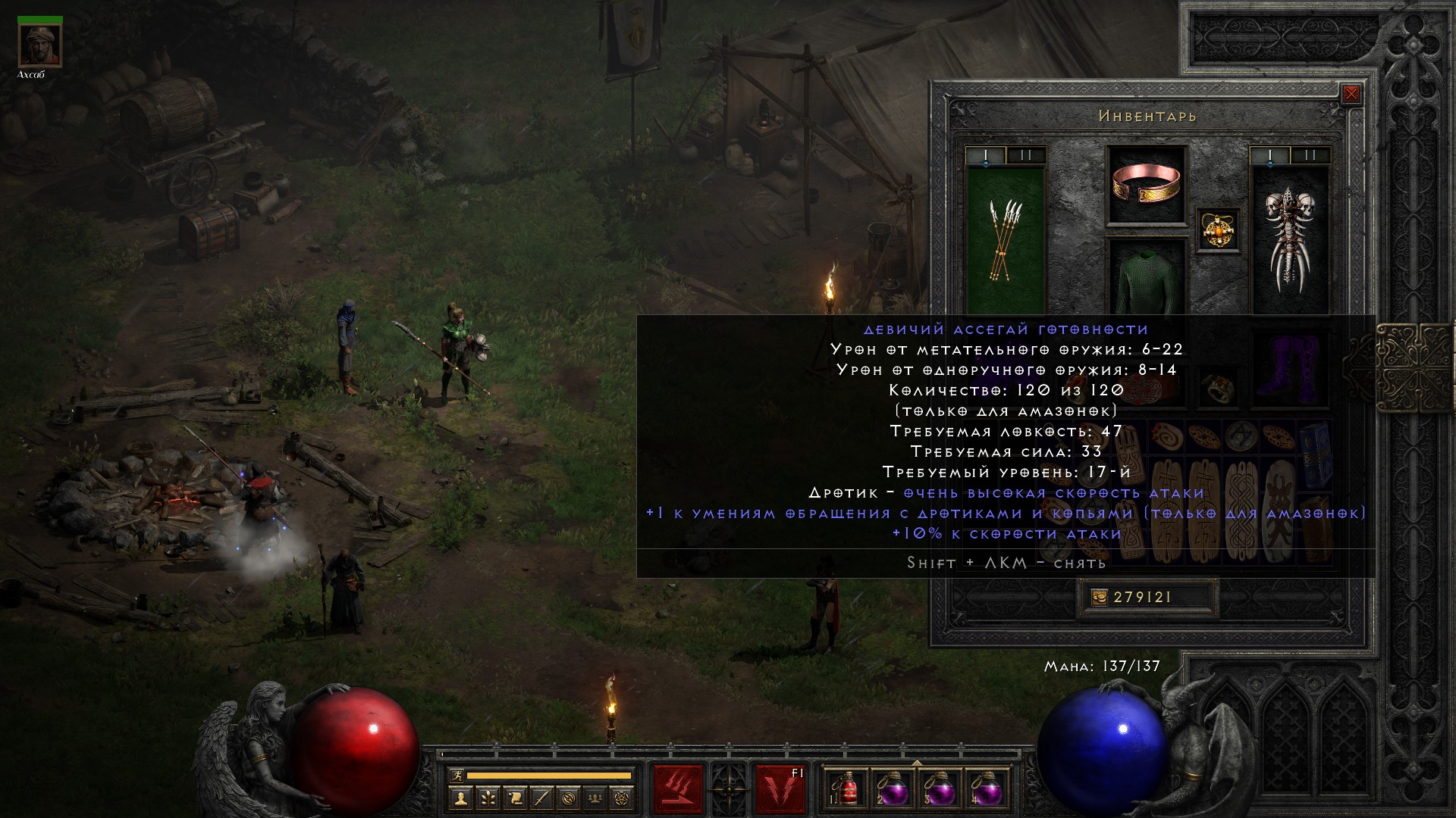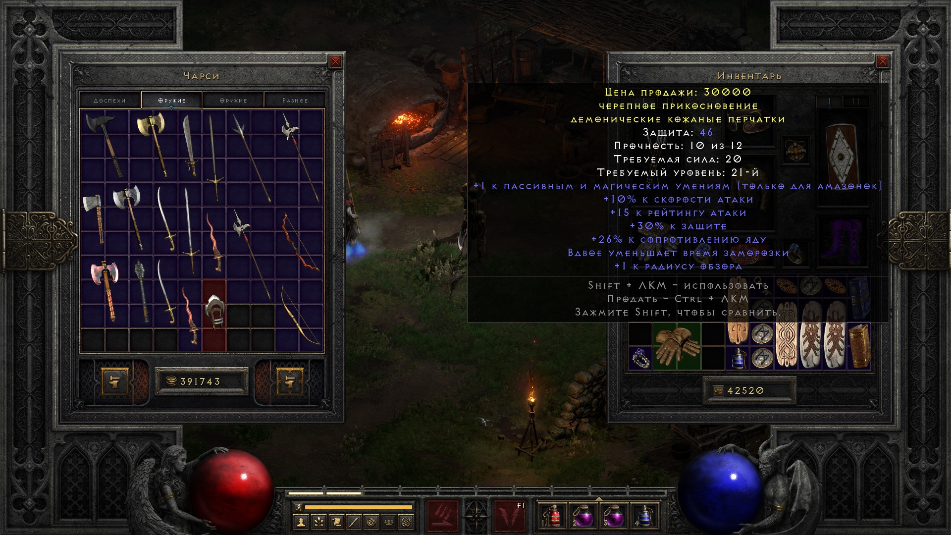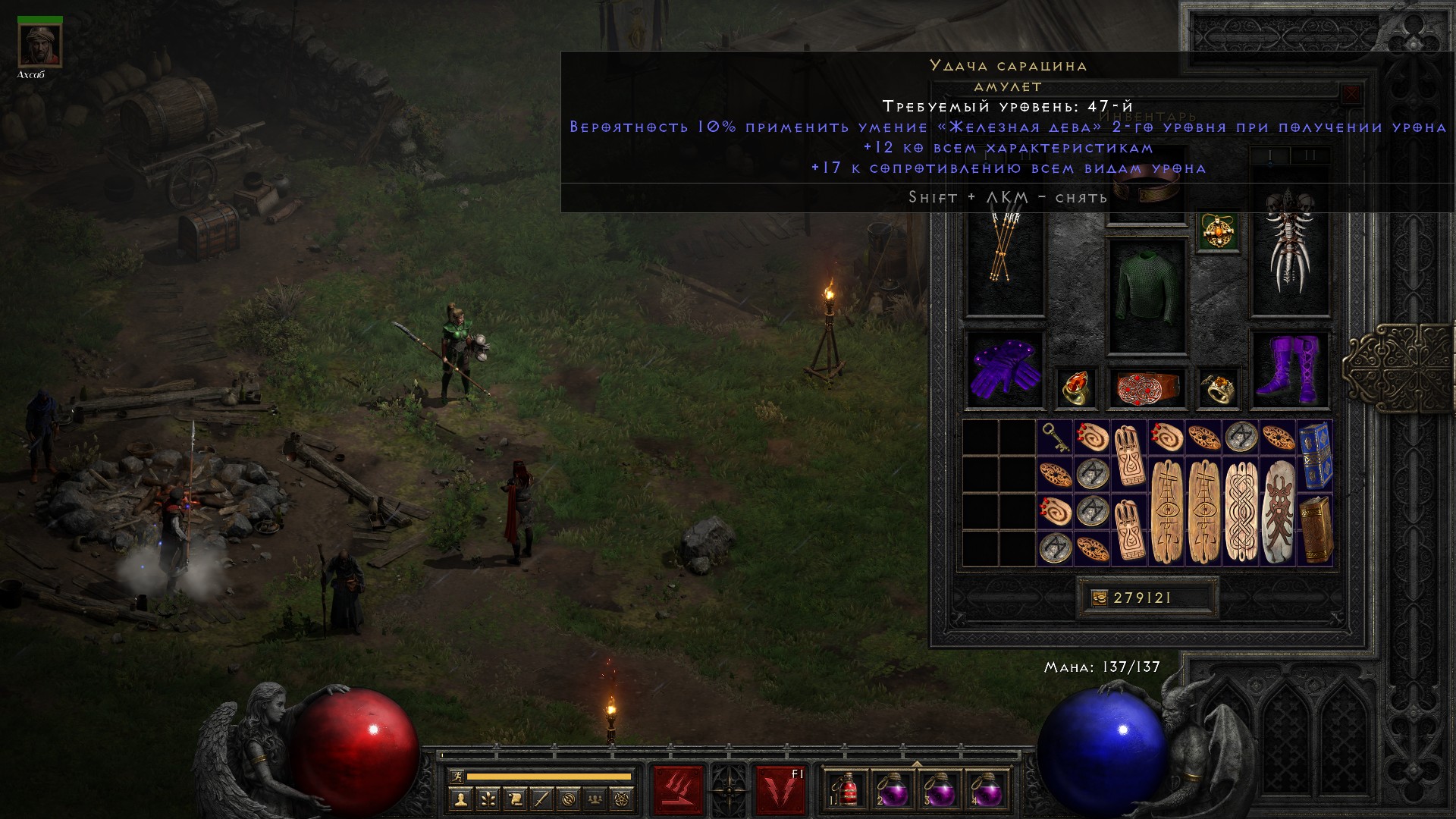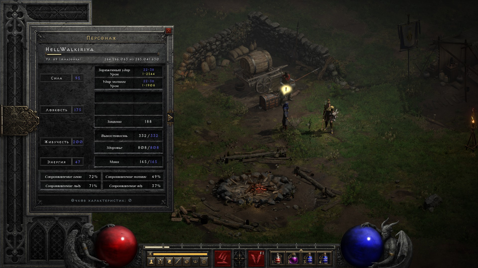 С этого момента характеристики новой амазонки начинают отличаться от амазонки нереального разгона, где я делал упор только на здоровье и урон. Теперь к ним добавляется блок, который постепенно буду доводить до 75%.