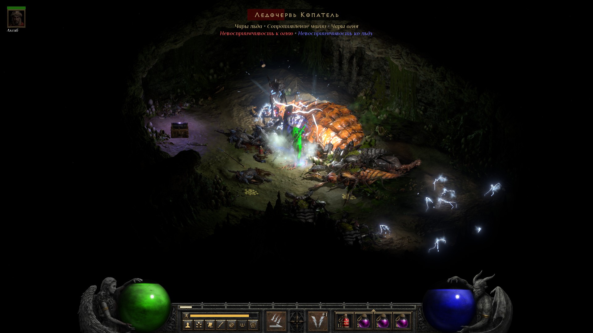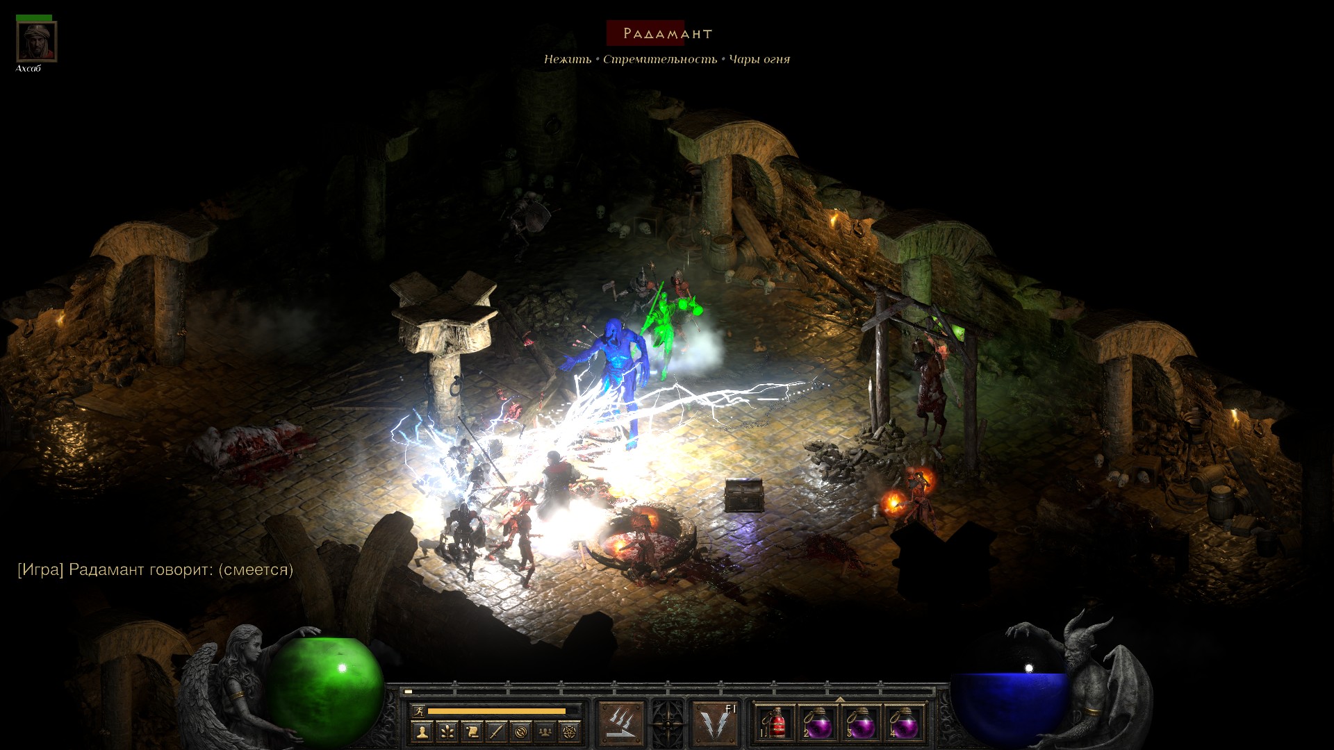 Кстати, пора рассказать про сложность второго акта. 99% времени здоровье практически не опускается, но бывают моменты, когда персонаж оказывается в толпе монстров, плюс кто-нибудь еще накидывает проклятье – и тогда здоровье очень даже бодро опускается.