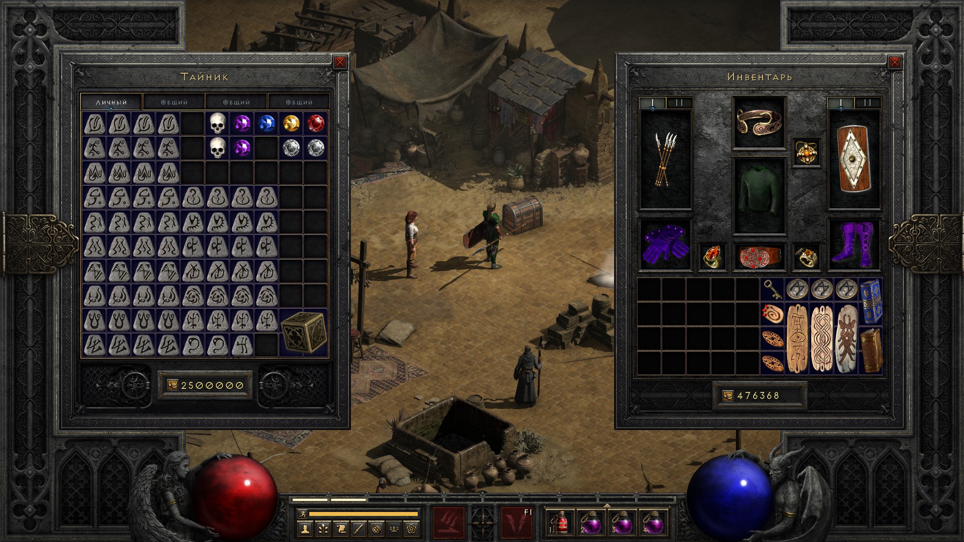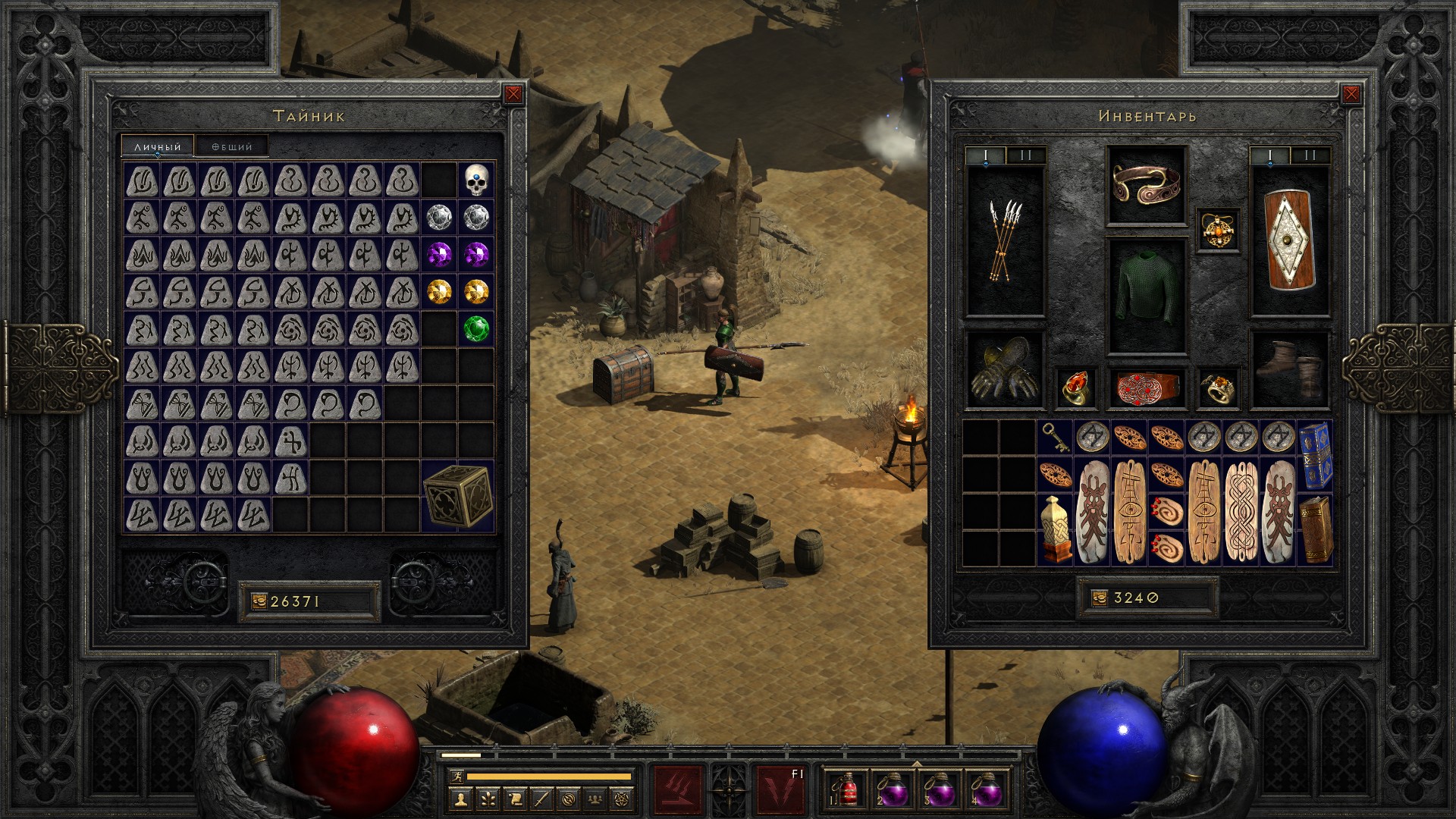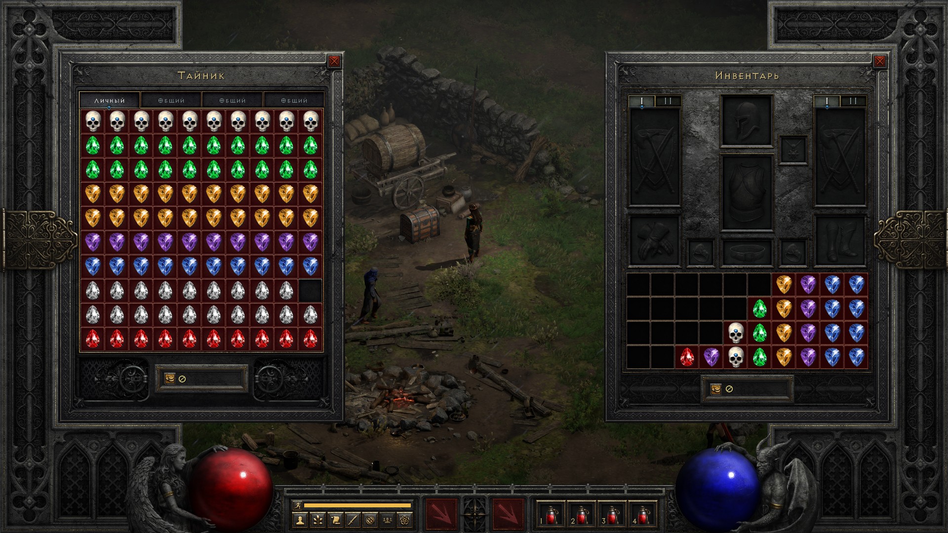 Запасы камней всё копится. Уже в следующем акте начну их варить. Да, знаю, что великие чармы с нужным ilvl можно получить и раньше, даже на нормале вроде как из Баала. Но я для простоты подожду до 3 акта, где уже любой великий чарм можно варить с целью получения скилловика.
