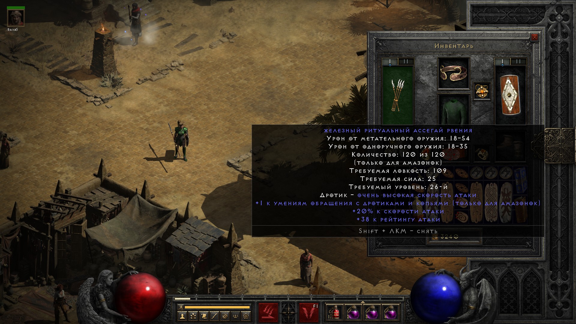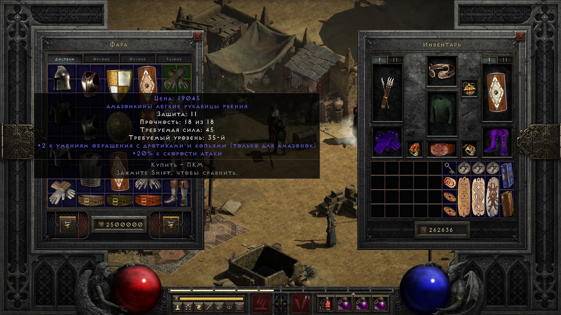 Просто продавал предметы торговцу, и просто решил посмотреть что у него продается – и в продаже перчатки на +2 к умениям дротиков и копий и +20% к скорости атаки.