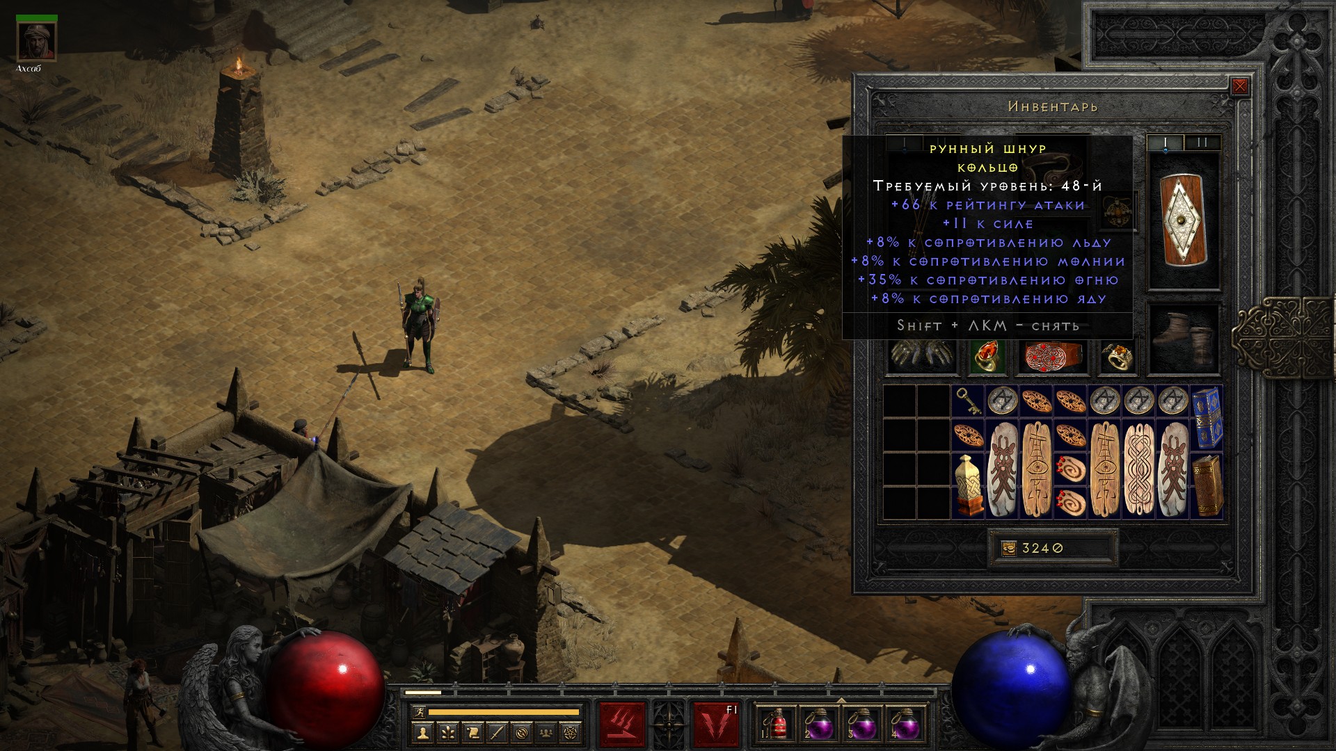 Прошло всего 6 минут (проверил по дате создания скриншотов) с момента как выбежал из города, и помимо новой руны выпадает Полэкс на 4 сокета. Я пятый акт обычной сложности, где уровень монстров плюс-минус такой же, фармил десятки часов, и фиг, а тут сразу более хороший дроп пошёл.
