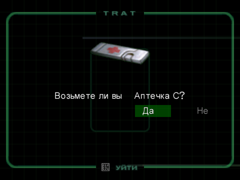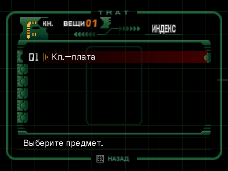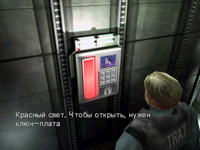Нажав взаимодействие, вы узнаете, что вам нужна ключ-плата, чтобы открыть ящик. Игра довольно старая, потому даже если у вас есть ключ-плата, ее нужно применить, сам персонаж ее не достанет и не использует.Потому открывайте инвентарь нажав на ПК клавишу Z выберите в меню вещи, потом нижнюю строку, а верхняя строка - это аптечки. Из вещей у вас только ключ-плата, потому просто нажимайте «Энтер» дважды.