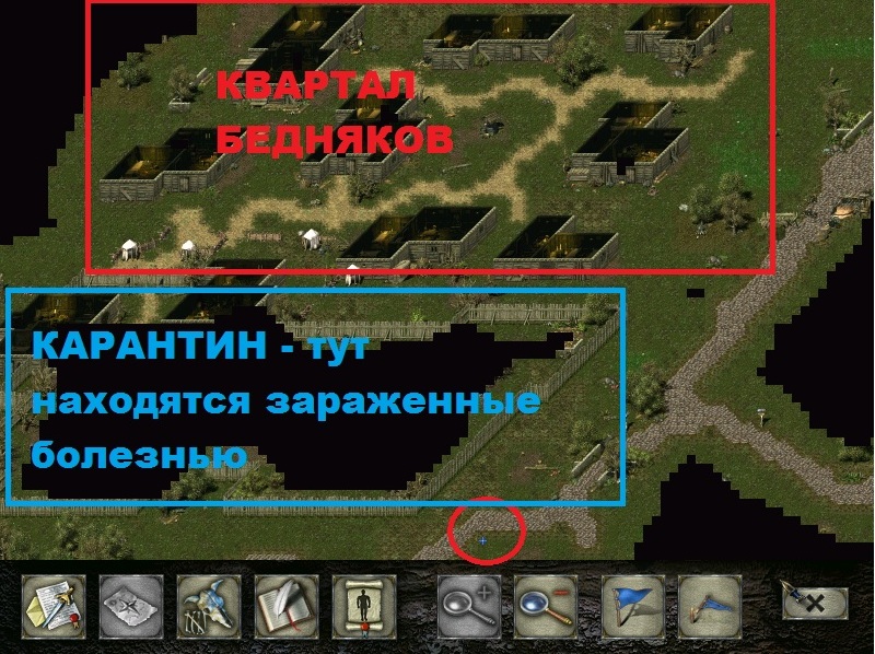 Разговор и торговля с NPC персонажами тоже мышью. Доступно перемещение предметов, например можно разбросать наваленные кучей тюки и обнаружить под ними вещь или люк в подвал. Нужно только подойти поближе, чтобы перемещаемый предмет светился белым.