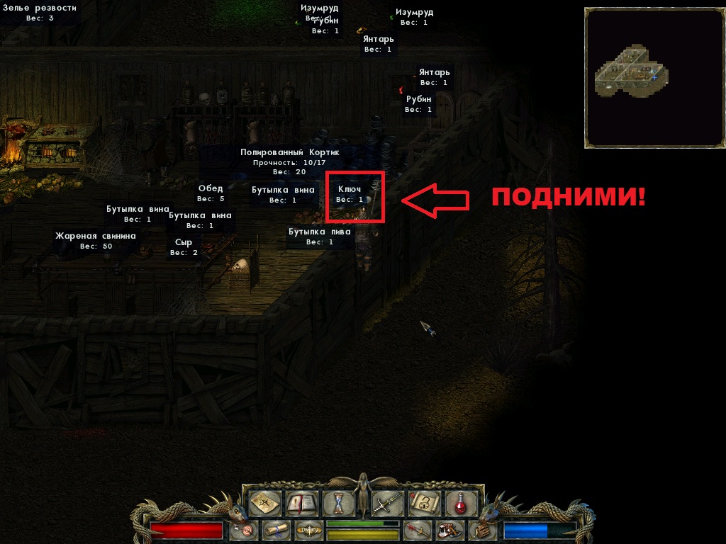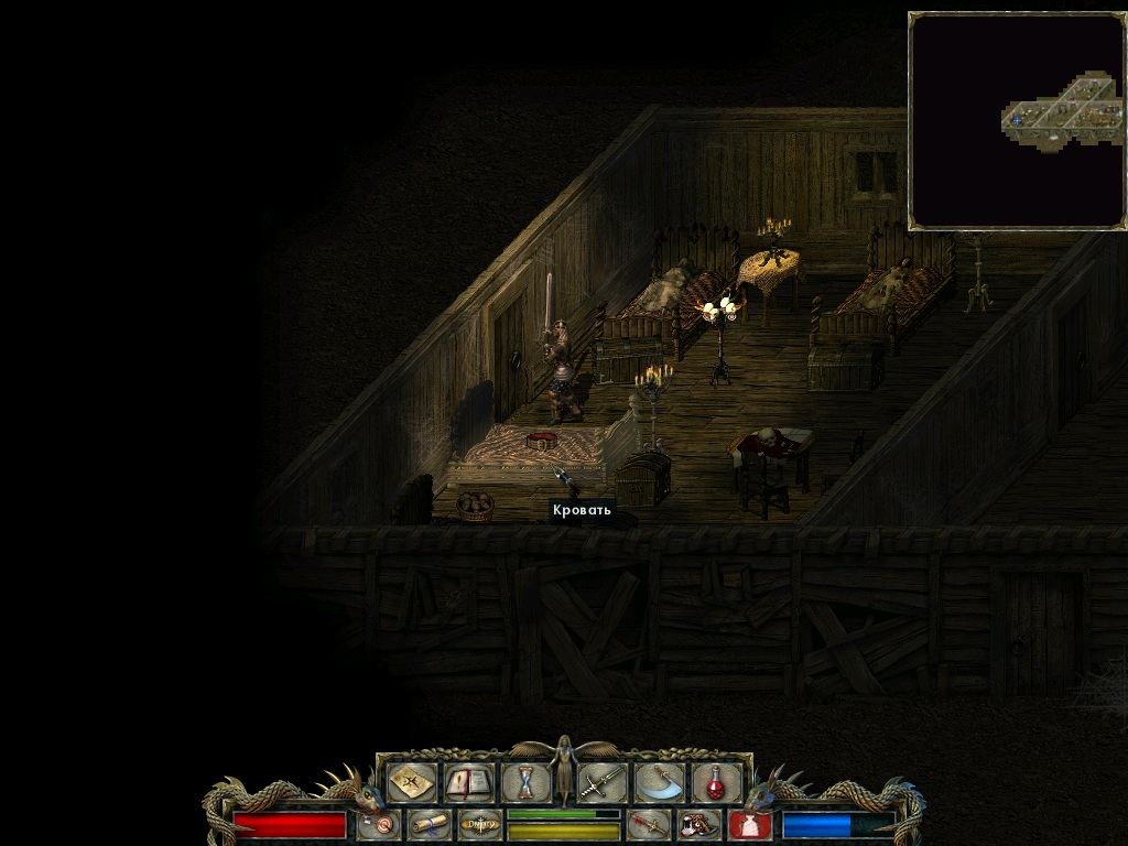 Кликнув по кровати левой клавишей мышки – снова оказываемся в подземелье, где недавно разгребали бочки.