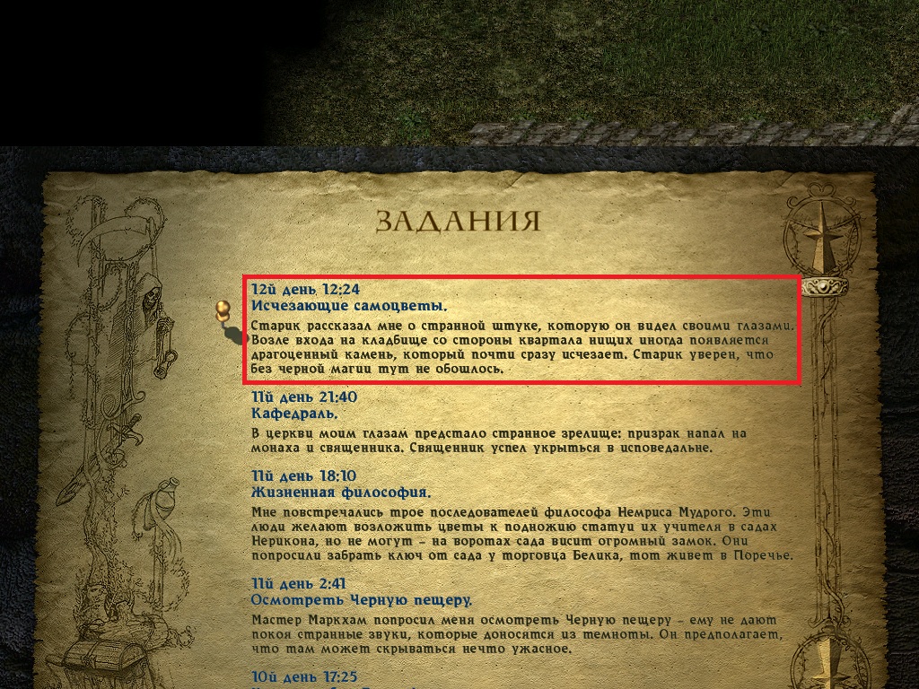 Во-вторых, оно спрятано и не каждый догадается где и как его искать. Даже если вы быстро отыщете выход из подземелий и сможете выйти на кладбище через потайной ход в могиле, вы всегда сможете вернуться и обыскать подземелье снова, но тут вам понадобится не только внимательность, но и сообразительность.