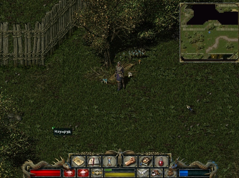 Но стоит подойти поближе, и Изумруд пропадает, но тут же чуть подальше появляется снова, так что двигаемся вдоль нижнего забора карантинной зоны вслед за камушком. И натыкаемся на засаду злодея мага Бората, с которым мы еще успеем расквитаться далее по сюжету.