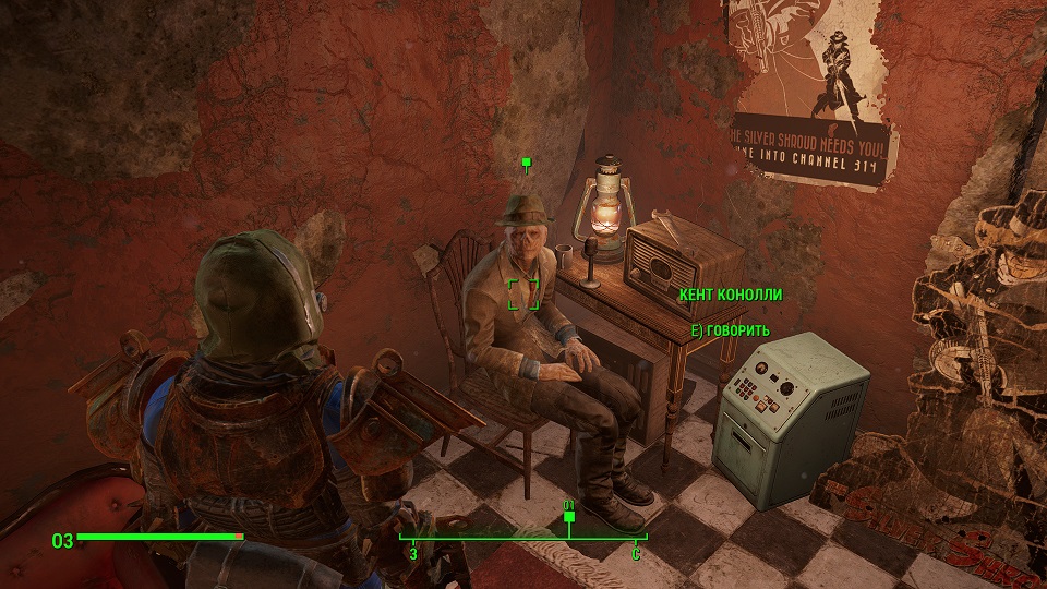 Этот гуль фанат детективного радио шоу про супергероя по имени «Серебряный плащ», который в одиночку боролся с беззаконием. Так вот Кент хочет сам заняться борьбой с преступностью под маской серебряного плаща, только ему не хватает костюма. Добыть костюм можно на студии, которая до войны собиралась экранизировать это произведение. Поэтому наше задание пойти туда и найти костюм. Тут же можно поторговаться, если позволяет харизма и получить часть крышек - 75 штук авансом, фактически еще ничего не сделав.