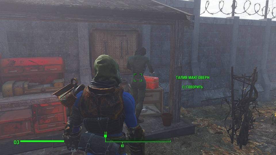Поговорив с Дэном, и получив информацию про Синтов-искусственных людей, следует поговорить с Талией Макговерн. Талия днем находится возле Мастерской Альянса.