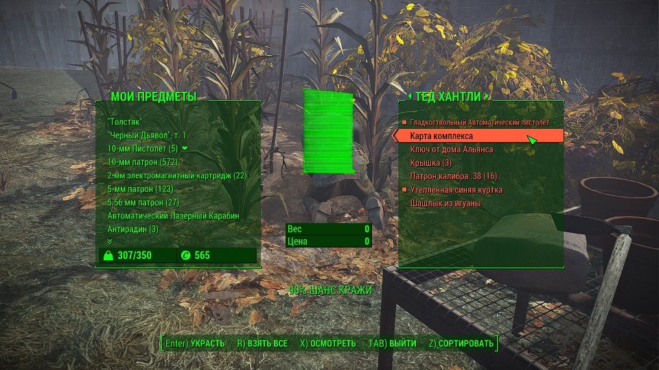 Второй метод пригодится тем, кто прокачал навыки «Карманник» и «Лазутчик», тогда шанс украсть карту у вас будет выше, максимум дает 90 процентов: Тед Хантли днем пропалывает кукурузу. Подкрадываемся в режиме скрытности и нажимаем залезть в карман – клавиша «Е».