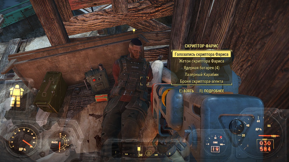 Станция недалеко, антенны были даже видны с холма, когда я расстреливал турели.Вот тут игрока ждет грандиозный замес с супермутантами, потому что тут несколько вождей и два легендарных вождя, помимо гончих и простых супермутантов. И у них преимущество – стрельба с вышек. Да и стрельба идет из лазерного оружия, гранатометов и гранатами они тоже кидаются. Тут очень помогает оружие со снайперским прицелом. На одной из вышек в пристройке находим тело Скриптора Фариса.