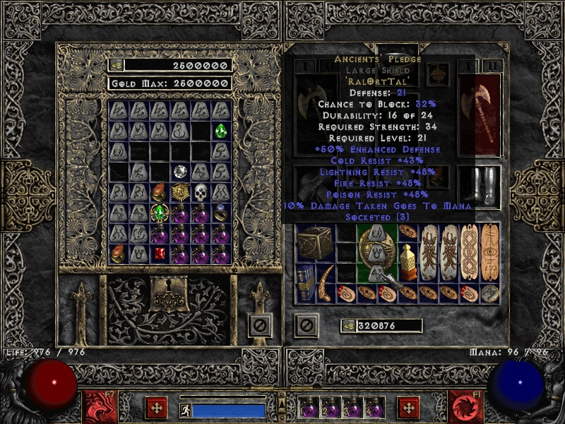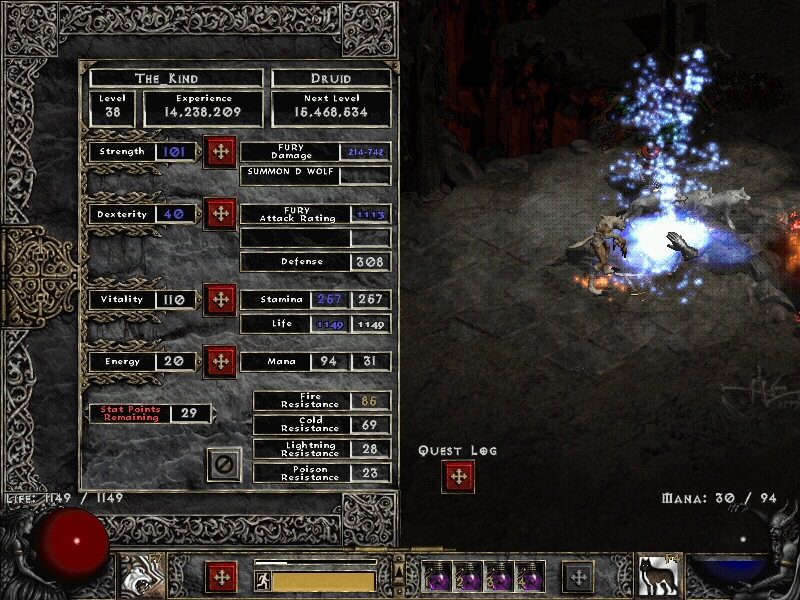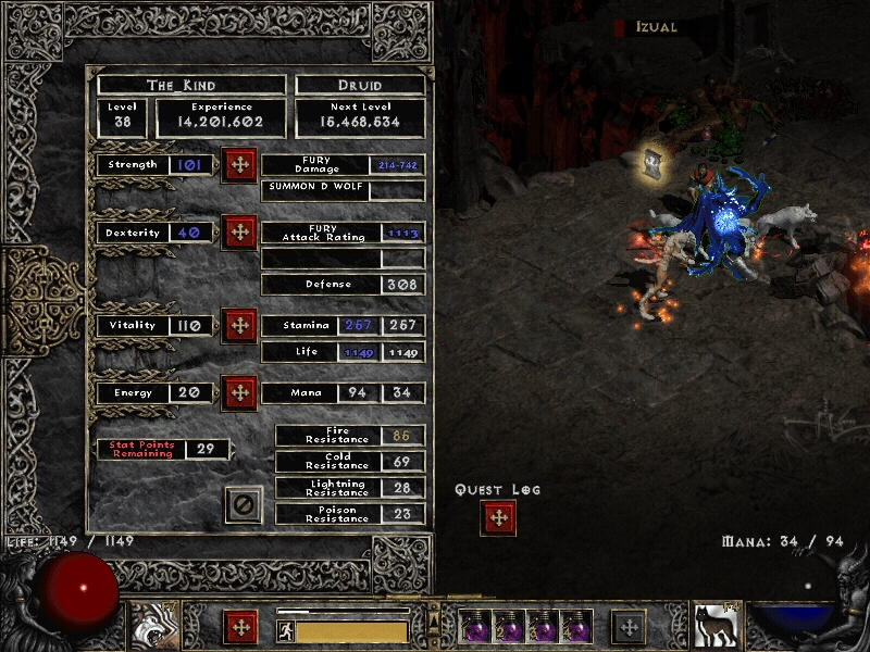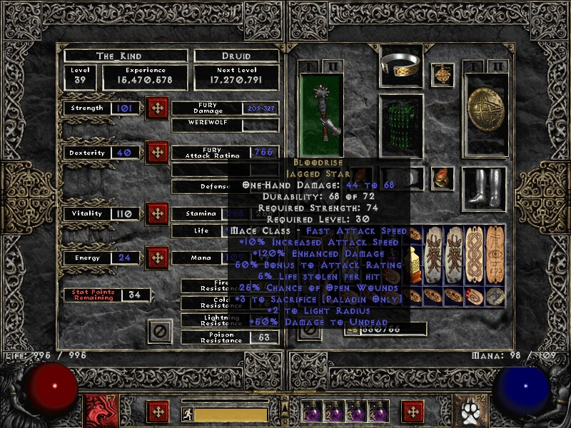 Тоже играю на харде, практически паралельно с этими хрониками (разумеется в сингле на /п8). Скажу, что есть чему удивиться! Столько хп на этом уровне, я скажу не мало! Да и уровень такой развить очень трудно (я на 34 уровне сейчас). Однако у меня всё же 75% алл рес, что позволяет выживать очень даже спокойно. Вобщем, постараюсь идти паралельно и не умирать, дабы "посоревноваться" с этим друидом по характеристикам :)