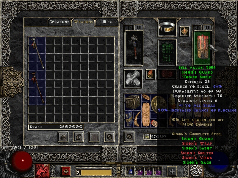 Последняя вещь набора «Sigon» вылетела. К 44 уровню собрал (выбил) два набора.