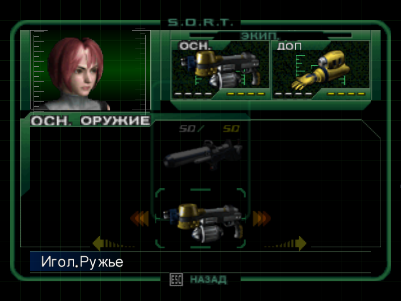 Это основное оружие доступно Регине только в одном эпизоде – Завод Третьей Энергии, при прохождении его подводной части в скафандре, придается к скафандру, потому достается без затрат очков. Позволяет использовать дополнительное оружие. При первом прохождении это единственное оружие с бесконечным боекомплектом если не считать второстепенное (шоковая волна). Используется только против Мозазавров и босса Плезиозавра, ибо прочих динозавров под водой не встретишь. Дальность и убойная сила соответствует пистолету, при стрельбе снизу вверх и наоборот препятствия не мешают убивать Мозазавров. Босса Плезиозавра на легком уровне тоже будет победить при помощи игольчатого ружья не сложно.