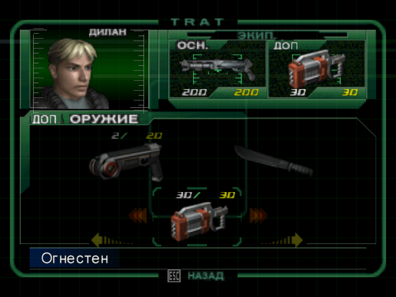 В этой игре два главных героя Дилан и Регина, у каждого свой арсенал оружия, недоступный второму персонажу. Однако, есть оружие доступное обоим персонажам – общее. Так же оружие подразделяется на основное и дополнительное. Начну с Дилана, так как он вступает в бой первым.