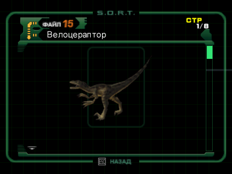 Следующий файл хоть и спрятан, но найдут все игроки, потому что пройти мимо просто невозможно. В зоне "исследовательский центр" область «Исследовательский центр Холл», при прохождении третьего эпизода игры за Дилана. В той же комнате что и терминал для записи, есть клетки для динозавров. Одну из них вам придется задействовать, чтобы отнять карту – ключ у мелкого, но очень юркого динозавра – похитителя. Найти можно в процессе открывания клетки. Тут и получаем данные о динозаврах «Компсогонаты» (Compy).