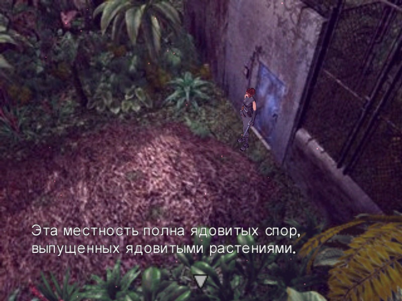Тут игроку предстоит нелегкий выбор, потому что купить все сразу очков хватит только у асов игры, которые ухитрились получить много бонусов за невредимость. Без огнемета, или огнестена Дилана вы не спасете, так что выбор очевиден, а пистолет-пулемет можно приобрести позже. Если не хватает немного, можно пострелять Велоцирапторов, сохраниться и снова пострелять, пока они совсем не пропадут. Расширять обойму пистолета-пулемета не советую более чем вдвое, этого с головой хватит, а потом приобретете более мощное оружие. У огнестена слишком маленькая дальнобойность, потому я бы рекомендовал выбрать огнемет, им и растения проще выжечь не рискуя умереть и по мелким динозаврам он тоже вполне ничего работает и обойма побольше. Обойму огнемета расширять нет смысла, хватит и того что есть, если не тратить боезапас на динозавров, пока не выжжете ядовитые растения. Не забываем пополнить обойму пистолета, расширять ее тоже не стоит, так как скоро вы купите пистолет – пулемет. Теперь можно идти на выручку к Дилану, пробегаем мимо того же самого Аллозавра, сворачиваем в область с ядовитыми растениями, выбираем основным вооружением огнемет. Теперь прокладываем себе путь сквозь две области с ядовитыми растениями, выжигая их на расстоянии и получая комбо. В первой области ядовитых растений есть спуск вниз, но без противогаза (который вы найдете много позже) вас туда не пустят, а потому просто двигайтесь вперед.