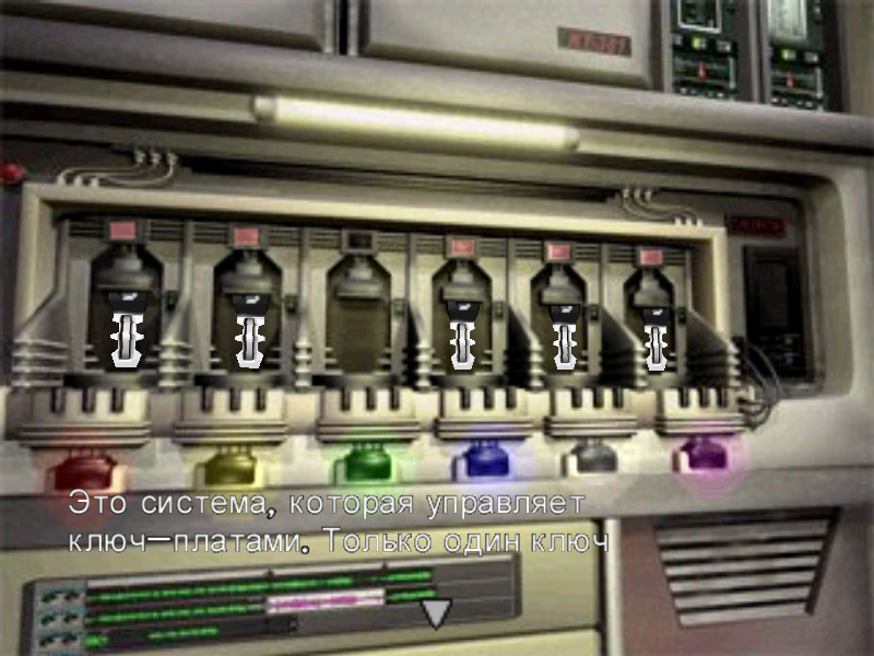 Одноглазого Тираннозавра тут уже нет, зато появились птеранодоны – разновидность птеродактилей. В принципе, он них можно отстреливаться используя пистолеты-пулеметы, хотя эффективность их слабовата. Либо просто пробежать, избегая нападок, и войти в область, где застрял Дилан. Там подбираете ключ-плату, которую Дилан выбросил под дверь и двигаете наружу и в другое помещение там, где вы сохранялись, играя за Дилана. Сохранившись и пополнив патроны идем туда, где замок открывается шокером (выйдя из помещения с терминалом двигаем влево). Придется переключить оружие на пистолет, огнемет и пистолет-пулемет занимают обе руки, потому применение дополнительного оружия, имея их в руках, невозможно. Открыв дверь попадаем в помещение Аппаратная. Тут терминал выдачи ключ-плат. Взять можно только один. Какой же цвет ключа нужен, чтобы освободить Дилана?