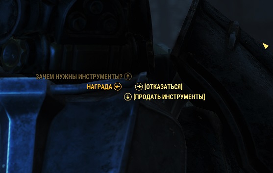 На выходе из «Иглс-Коув» вам встречается Майк Мачете. Он тоже ищет эти инструменты, которые очень редкие и потому он готов дать за них 2000 крышек. Против предложенных Морячкой 450 крышек, это более выгодная сделка. Вам предстоит нелегкий выбор.